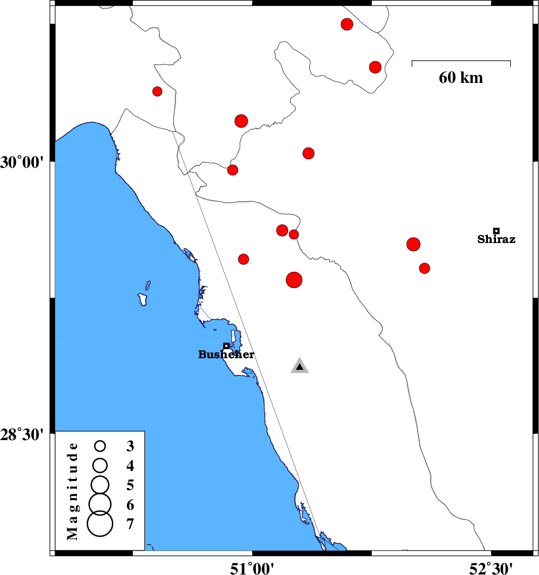 | 2018/12/29 | 15:20:58.0 | 18:50:58.0 | 29.464 | 50.944 | 14 | ML3 | Bushehr Province, 34 km North-West of Borazjan | ||