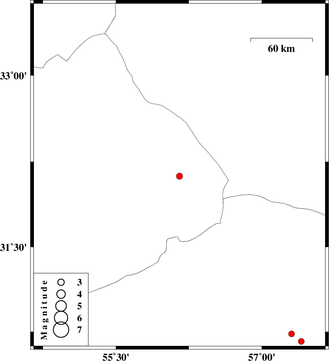 2019/01/02 | 04:20:40.4 | 07:50:40.4 | 30.664 | 57.406 | 14 | ML:2.8 | Kerman Province, 52 km North-East of Kerman | ||