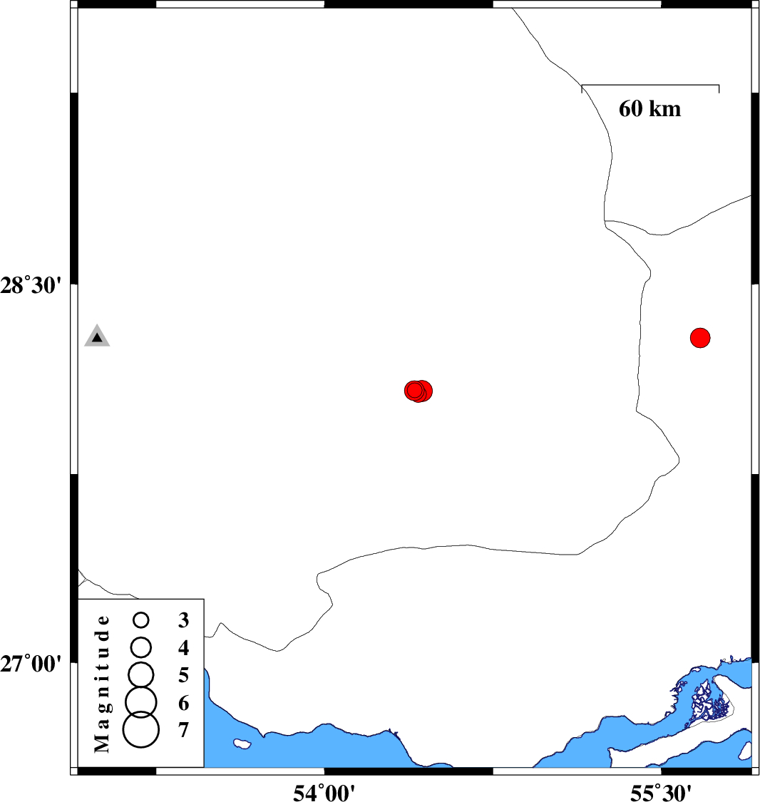 | 2019/01/02 | 15:39:33.1 | 19:09:33.1 | 28.078 | 54.433 | 15 | ML4.3 | Fars Province, 45 km North of Lar | ||