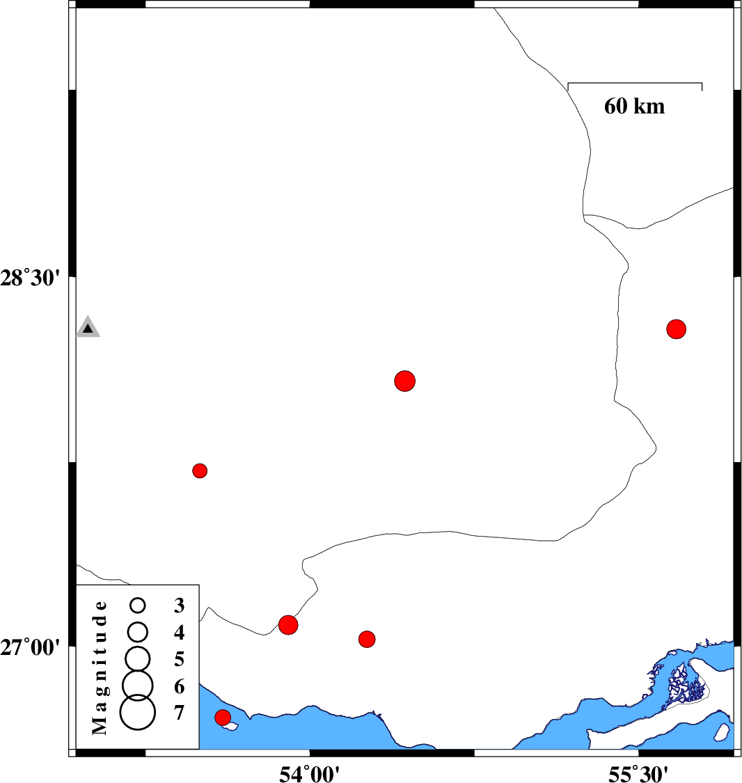 | 2018/12/05 | 07:38:51.7 | 11:08:51.7 | 27.028 | 54.26 | 15 | ML3.4 | Hormozgan Province, 21 km South-West of Bastak | ||