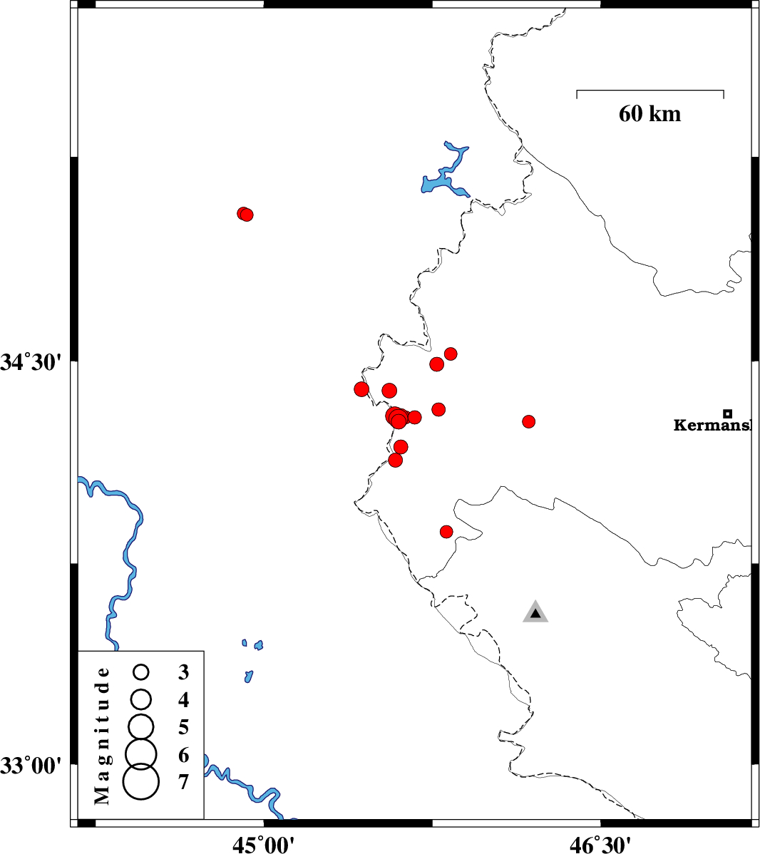 2019/01/01 12:37:22.9 16:07:22.9 33.86845.81314 ML2.6 Kermanshah Province, 32 km South-West of Gilan-E-Gharb