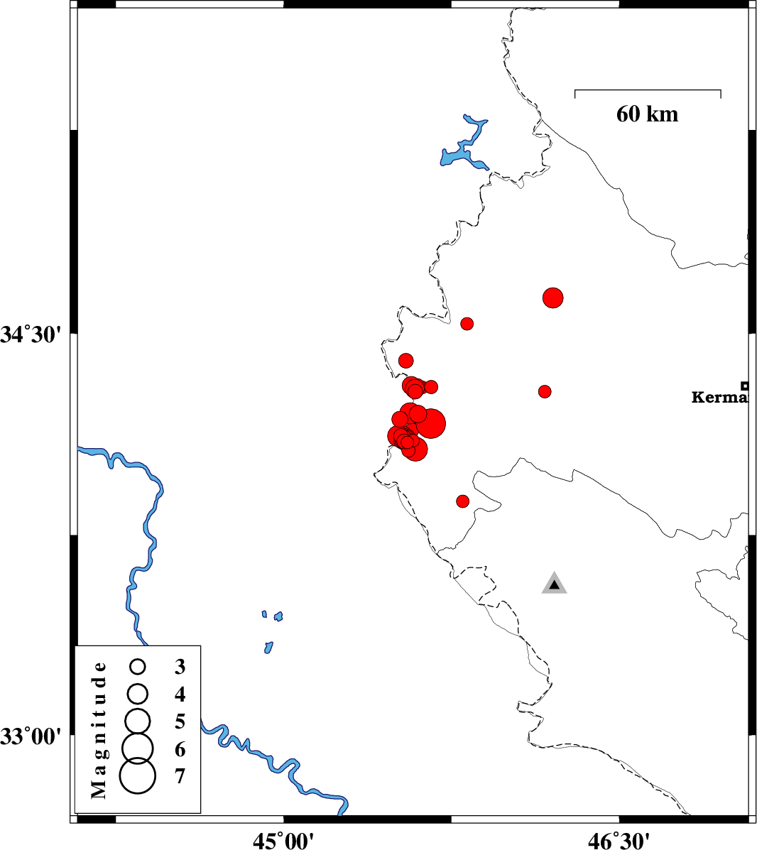 2019/01/04 18:02:40.8 21:32:40.8 34.29345.67115 ML2.7 Kermanshah Province, 26 km South of Qasr-E-Shirin