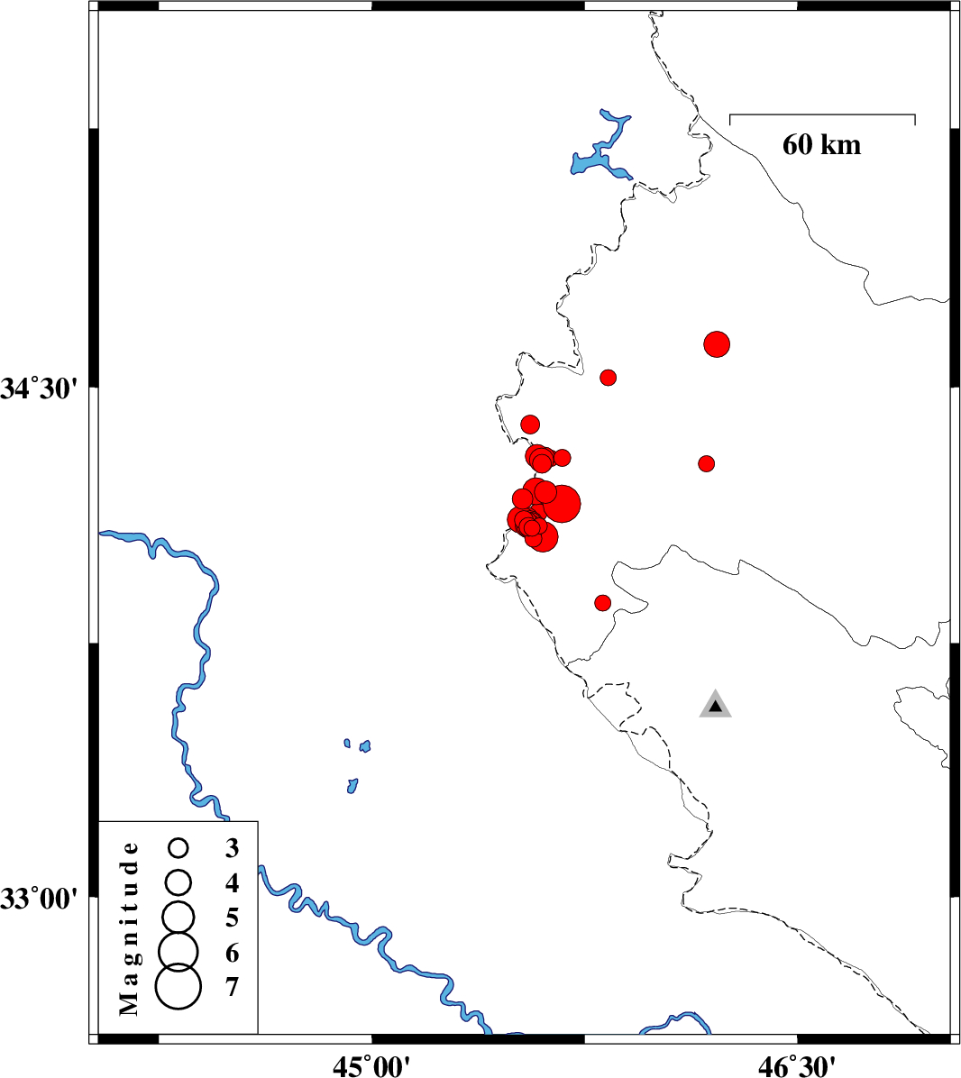 2019/01/01 12:37:22.9 16:07:22.9 33.86845.81314 ML2.6 Kermanshah Province, 32 km South-West of Gilan-E-Gharb
