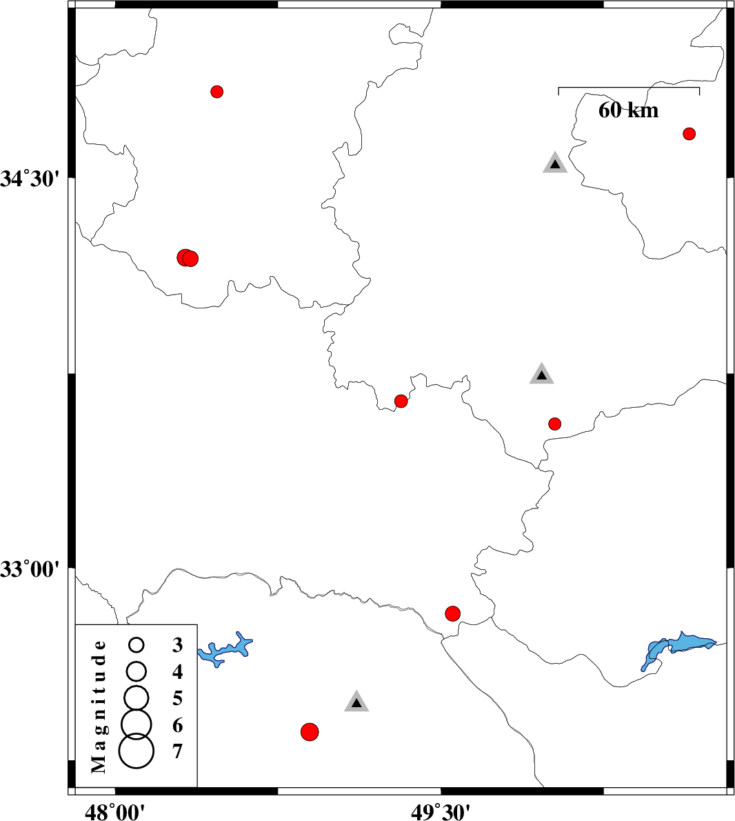 | 2019/01/06 | 20:00:31.3 | 23:30:31.3 | 33.644 | 49.316 | 6 | ML2.7 | Lorestan Province, 25 km North-West of Azna | ||