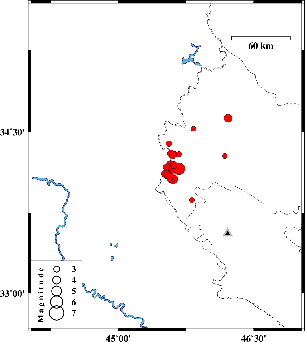2019/01/01 12:37:22.9 16:07:22.9 33.86845.81314 ML2.6 Kermanshah Province, 32 km South-West of Gilan-E-Gharb