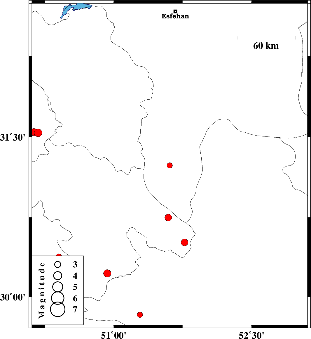 | 2019/01/11 | 11:31:43.3 | 15:01:43.3 | 31.235 | 51.61 | 15 | ML2.7 | Esfahan Province, 20 km South of Semirom | ||