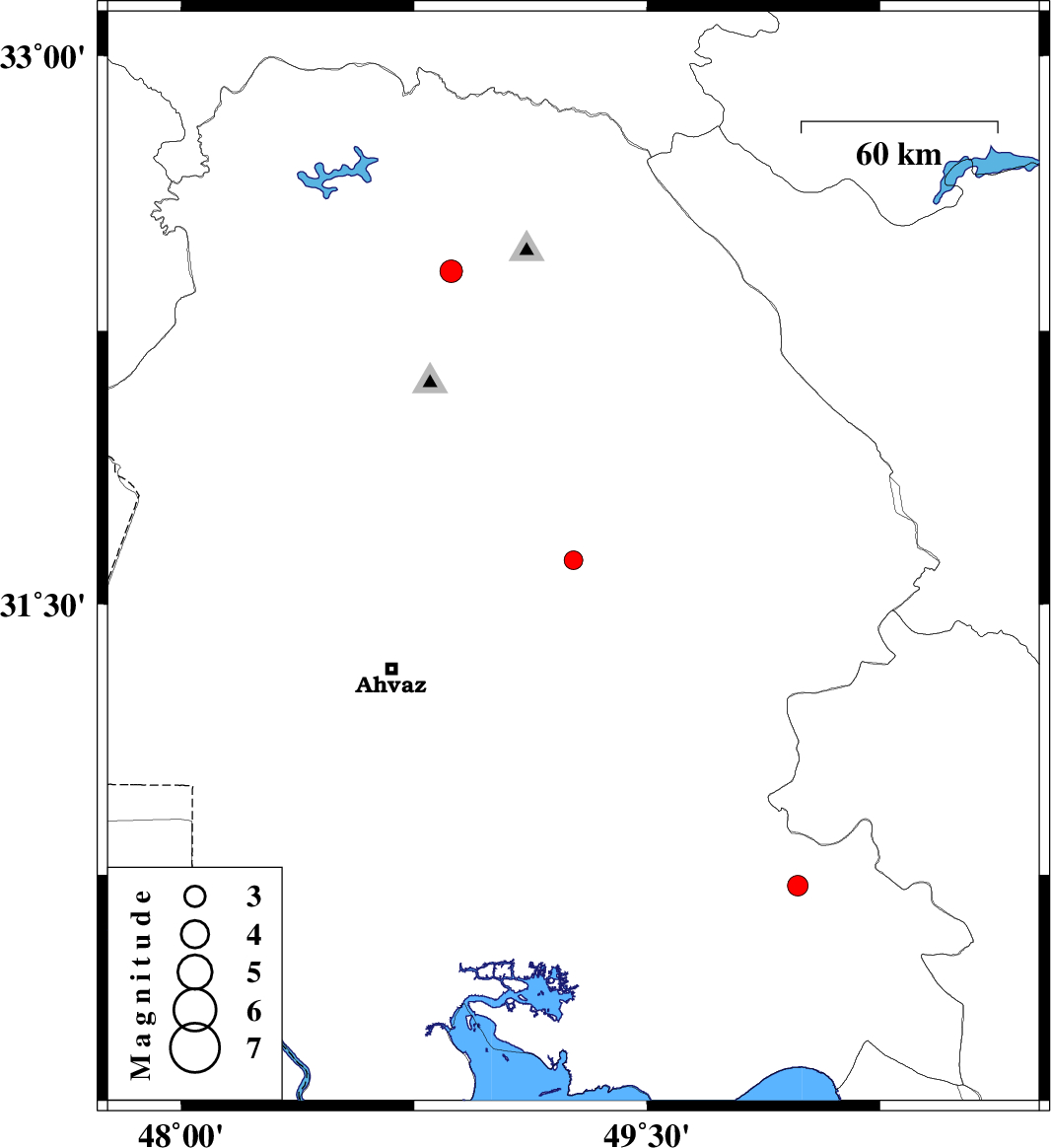 | 2019/01/12 | 13:17:50.8 | 16:47:50.8 | 32.413 | 48.869 | 14 | ML3.2 | Khoozestan Province, 23 km -West of Lali | ||