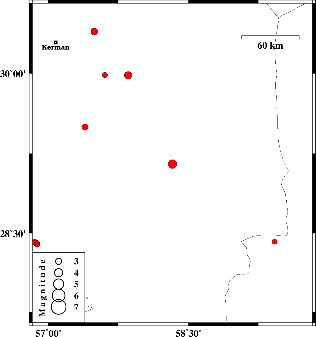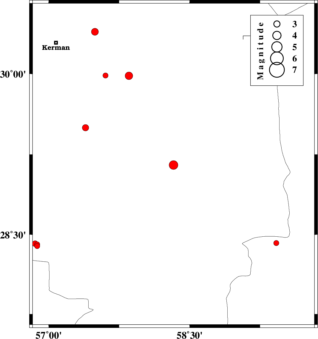 | 2018/12/15 | 07:17:29.0 | 10:47:29.0 | 29.499 | 57.392 | 14 | ML3.1 | Kerman Province, 81 km North-East of Baft |