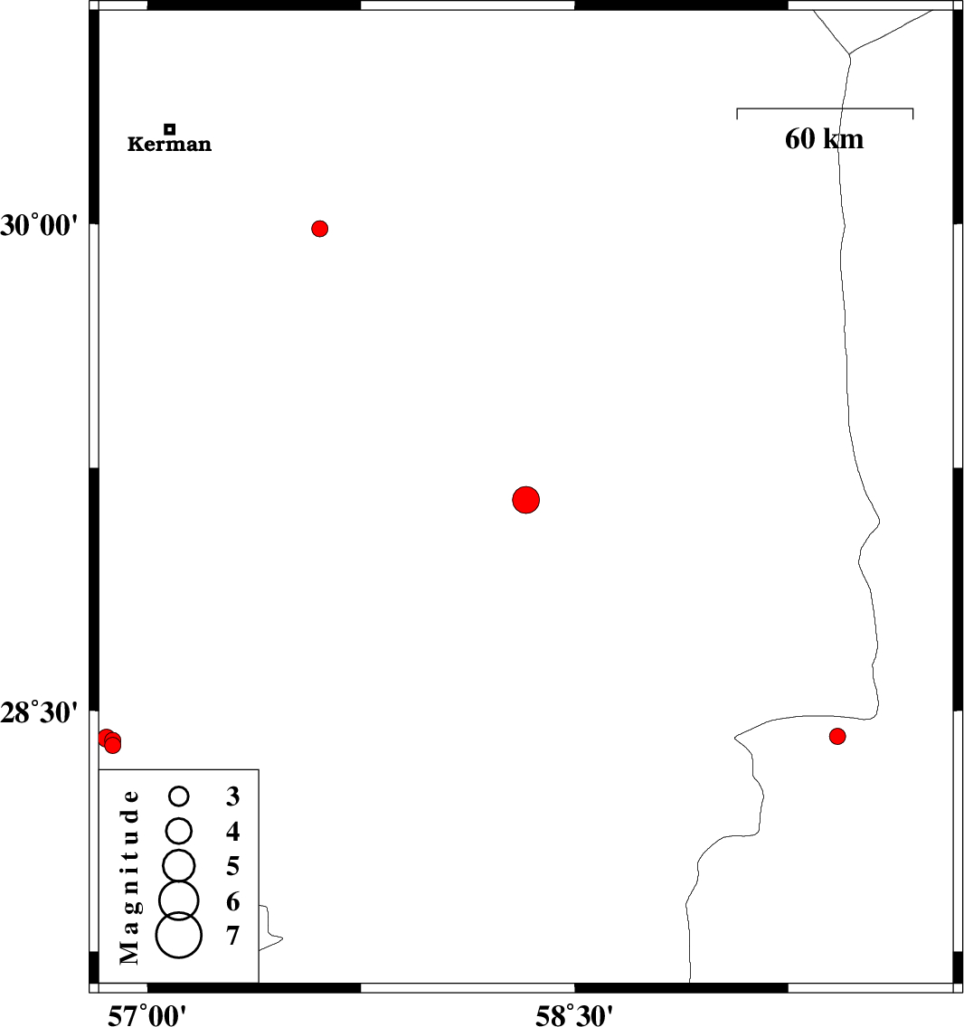 | 2019/01/07 | 20:17:16.1 | 23:47:16.1 | 28.415 | 56.856 | 14 | ML2.8 | Kerman Province, 94 km North-East of Hajiabad |