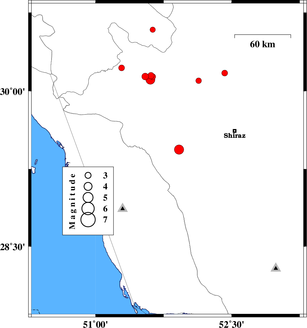 | 2019/01/09 | 00:57:20.6 | 04:27:20.6 | 29.831 | 51.286 | 15 | ML2.7 | Fars Province, 39 km South-West of Nurabad | ||