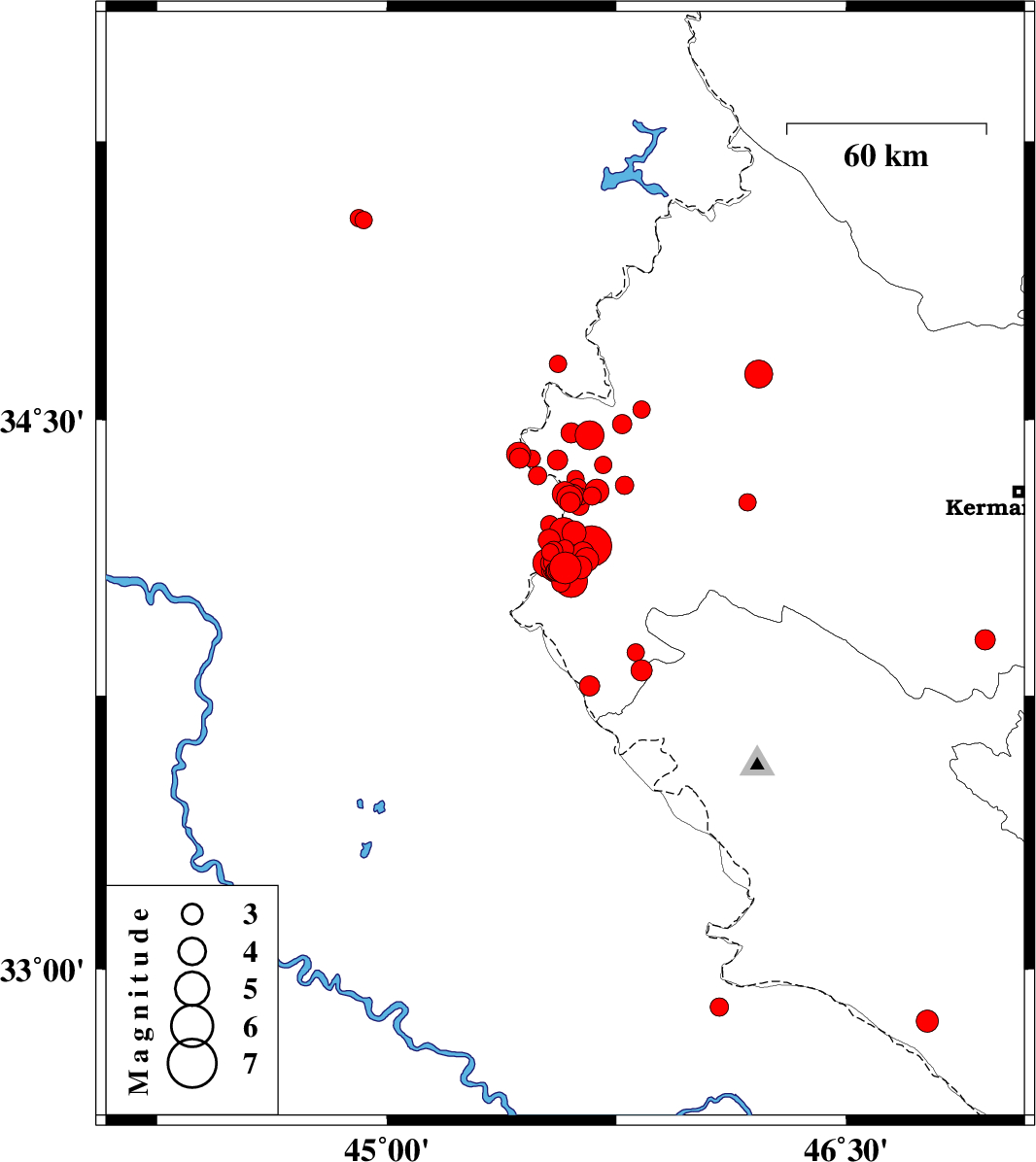| 2019/01/06 | 15:18:47.3 | 18:48:47.3 | 34.076 | 45.565 | 14 | ML3 | Kermanshah Province, 33 km -West of Gilan-E-Gharb | ||