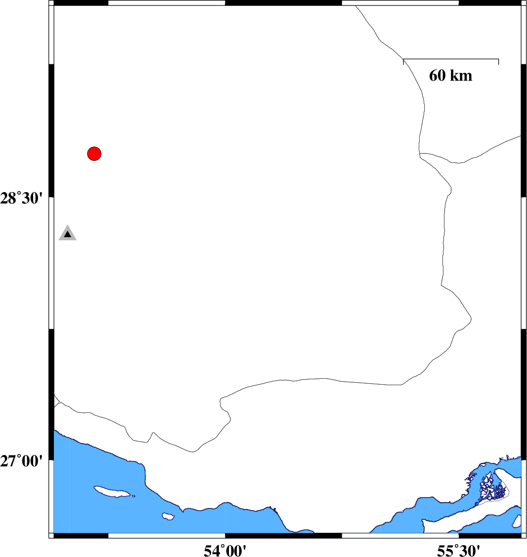 2019/01/04 15:16:45.9 18:46:45.9 28.06654.41716 ML3.3 Fars Province, 44 km North of Lar