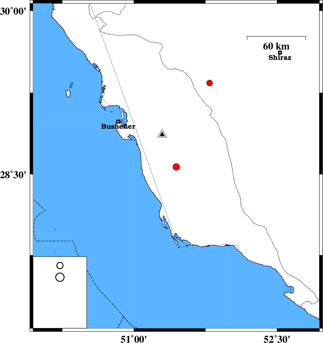 | 2019/01/18 | 05:29:32.1 | 08:59:32.1 | 28.567 | 51.444 | 23 | ML3.3 | Bushehr Province, 12 km of Khormog | ||