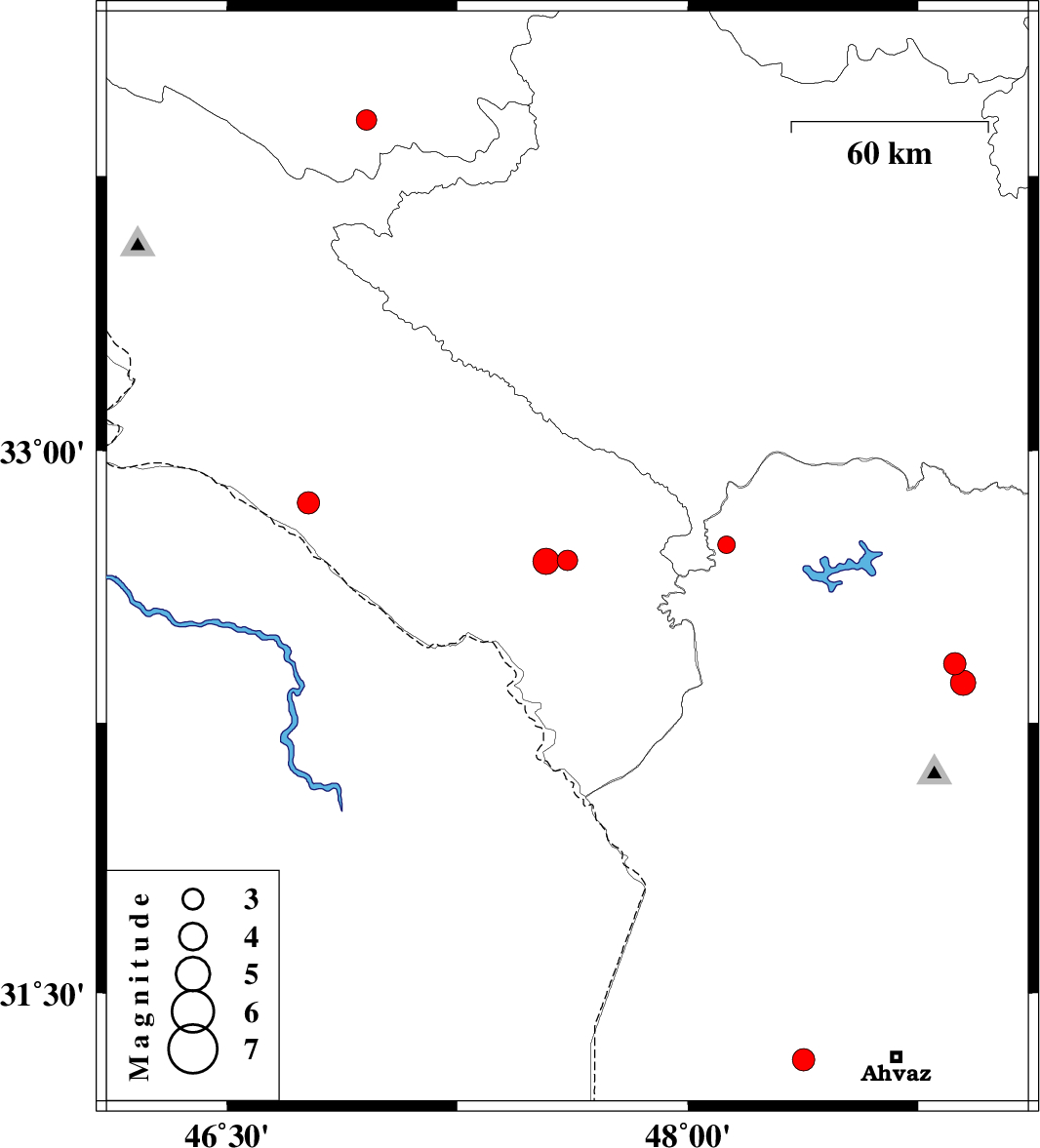 2018/12/28 | 19:56:56.8 | 23:26:56.8 | 31.313 | 48.376 | 14 | ML3.2 | Khoozestan Province, 29 km -West of Ahvaz | ||