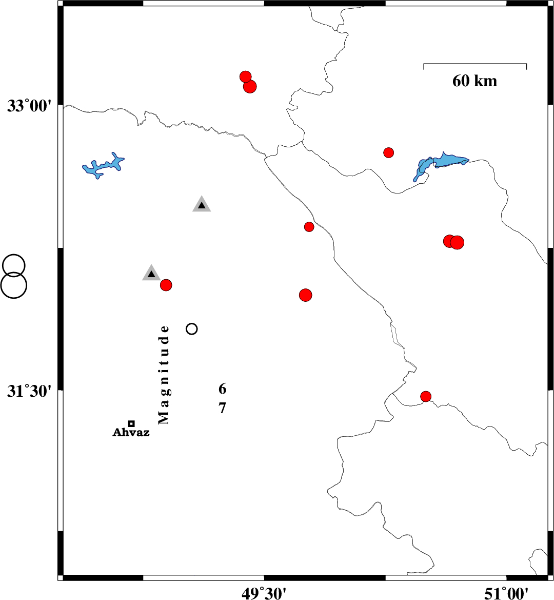 2019/01/08 | 18:05:36.7 | 21:35:36.7 | 30.719 | 49.985 | 15 | ML:2.9 | Khoozestan Province, 27 km -East of Omidiyeh | ||