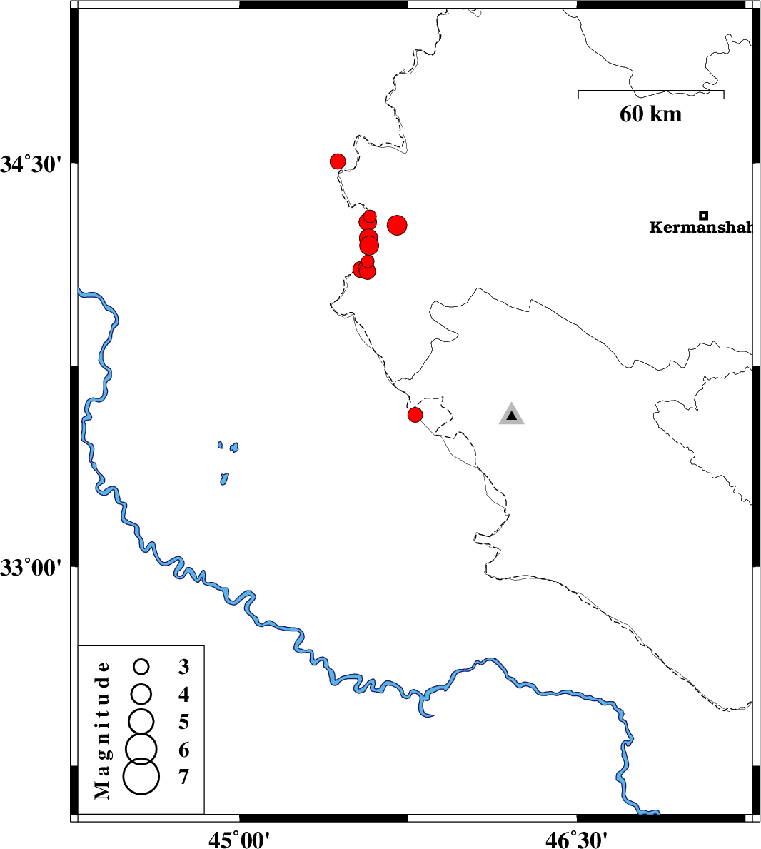 | 2019/01/23 | 09:45:20.3 | 13:15:20.3 | 34.222 | 45.574 | 14 | ML3.7 | Kermanshah Province, 33 km South of Qasr-E-Shirin | ||