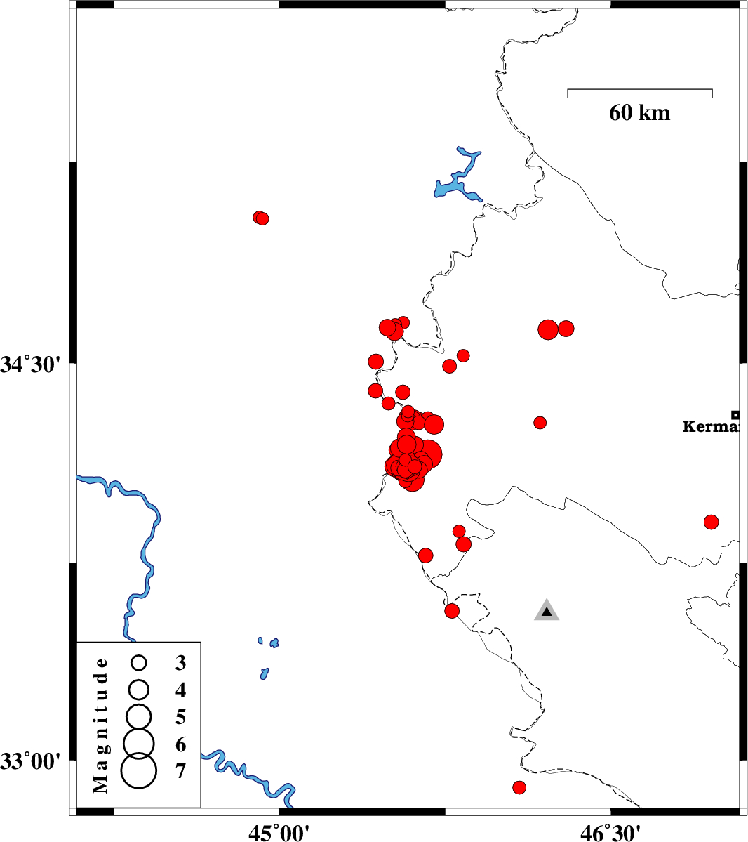 | 2019/01/06 | 15:18:47.3 | 18:48:47.3 | 34.076 | 45.565 | 14 | ML3 | Kermanshah Province, 33 km -West of Gilan-E-Gharb | ||