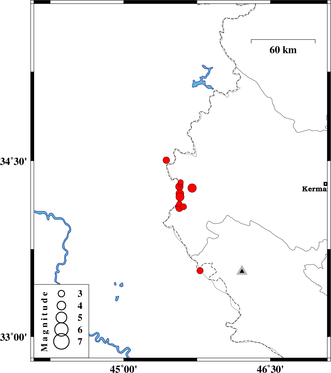 2019/01/23 | 05:04:04.1 | 08:34:04.1 | 34.281 | 45.57 | 14 | ML:3.5 | Iraq, 26 km South of Qasr-E-Shirin | ||