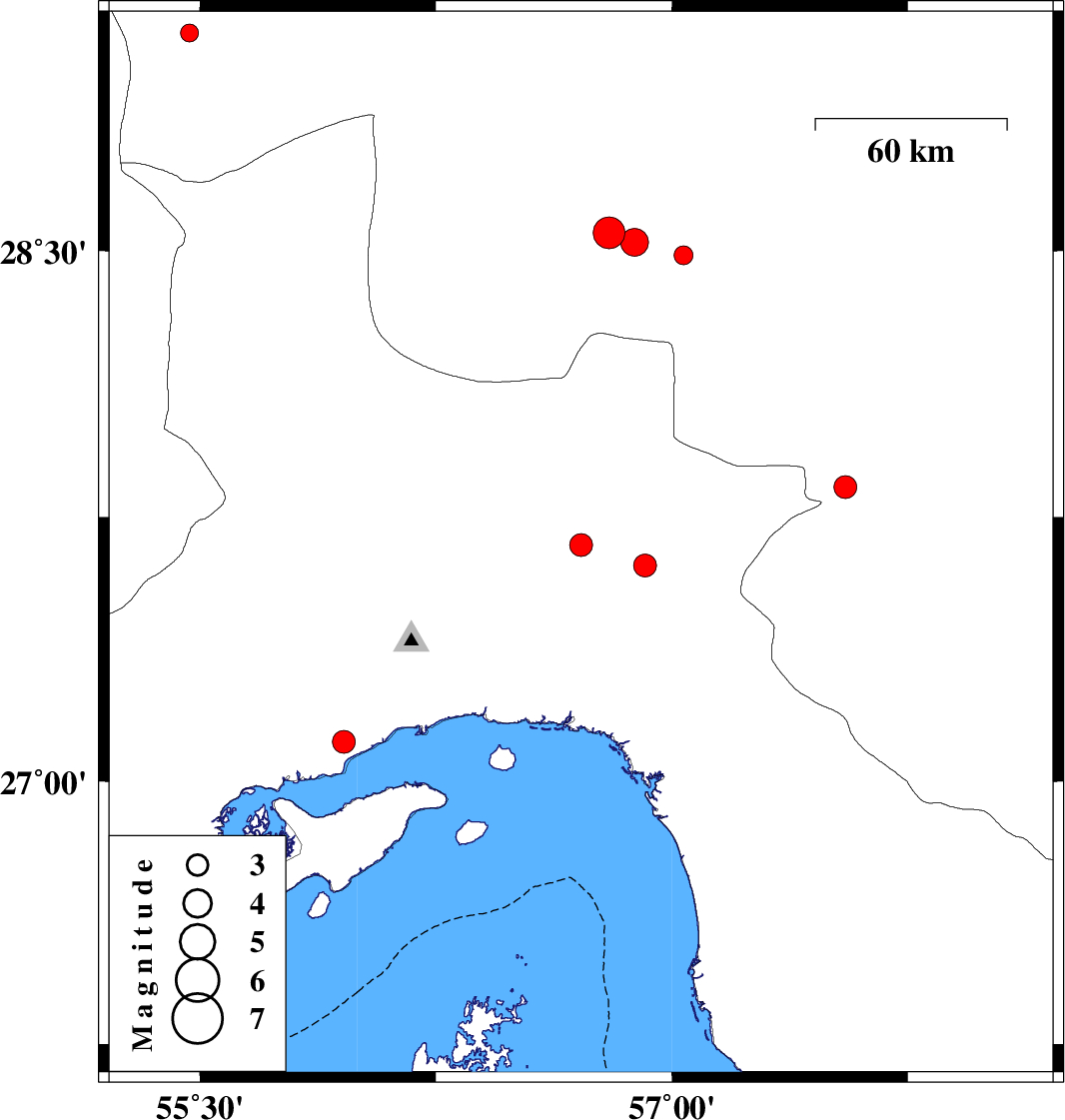 | 2019/01/25 | 01:32:21.4 | 05:02:21.4 | 27.112 | 55.957 | 15 | ML3.2 | Hormozgan Province, 33 km -West of Bandar-e abbas | ||