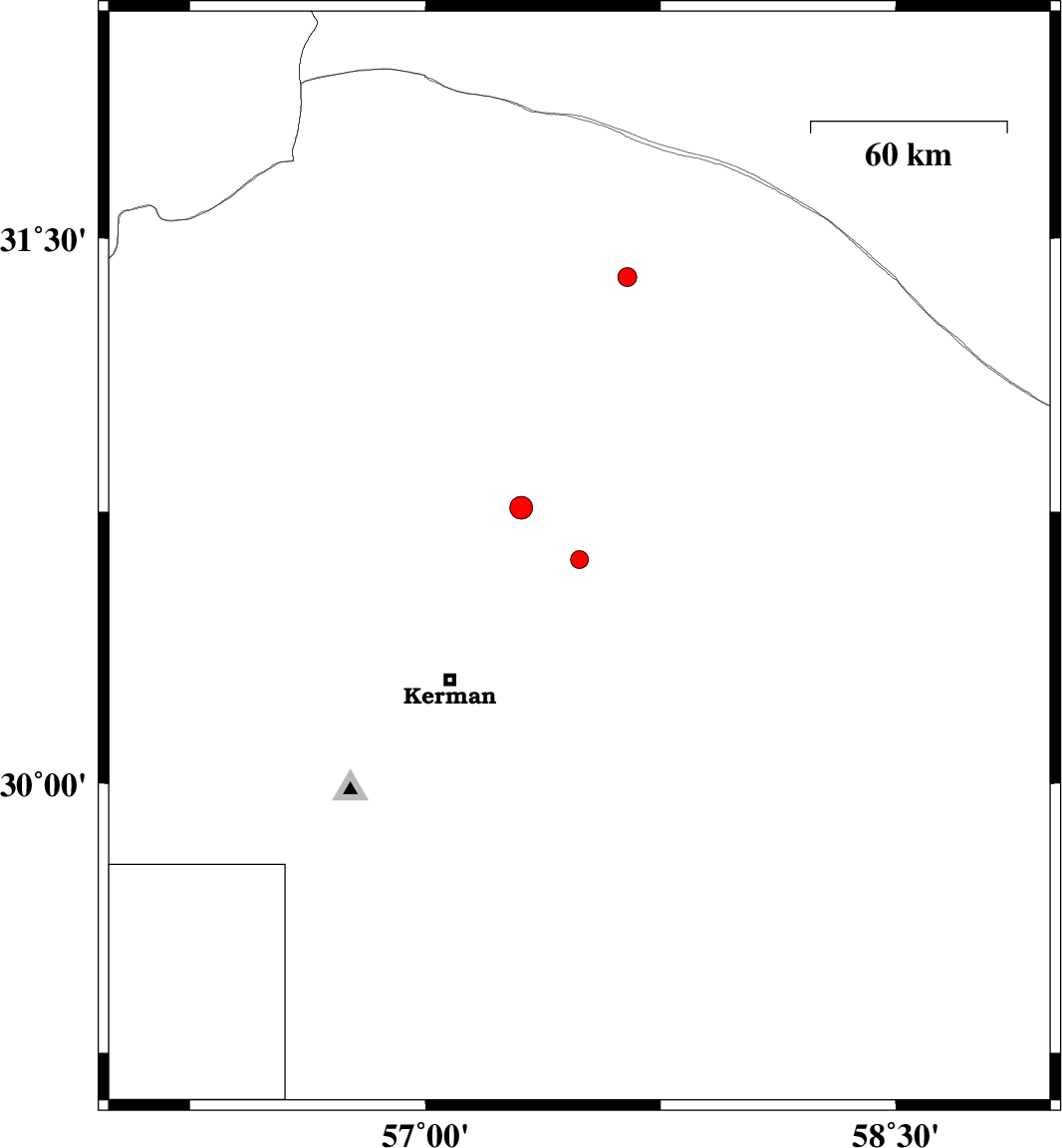 2019/01/28 | 13:39:16.1 | 17:09:16.1 | 30.619 | 57.491 | 14 | ML2.6 | Kerman Province, 54 km North-East of Kerman | ||