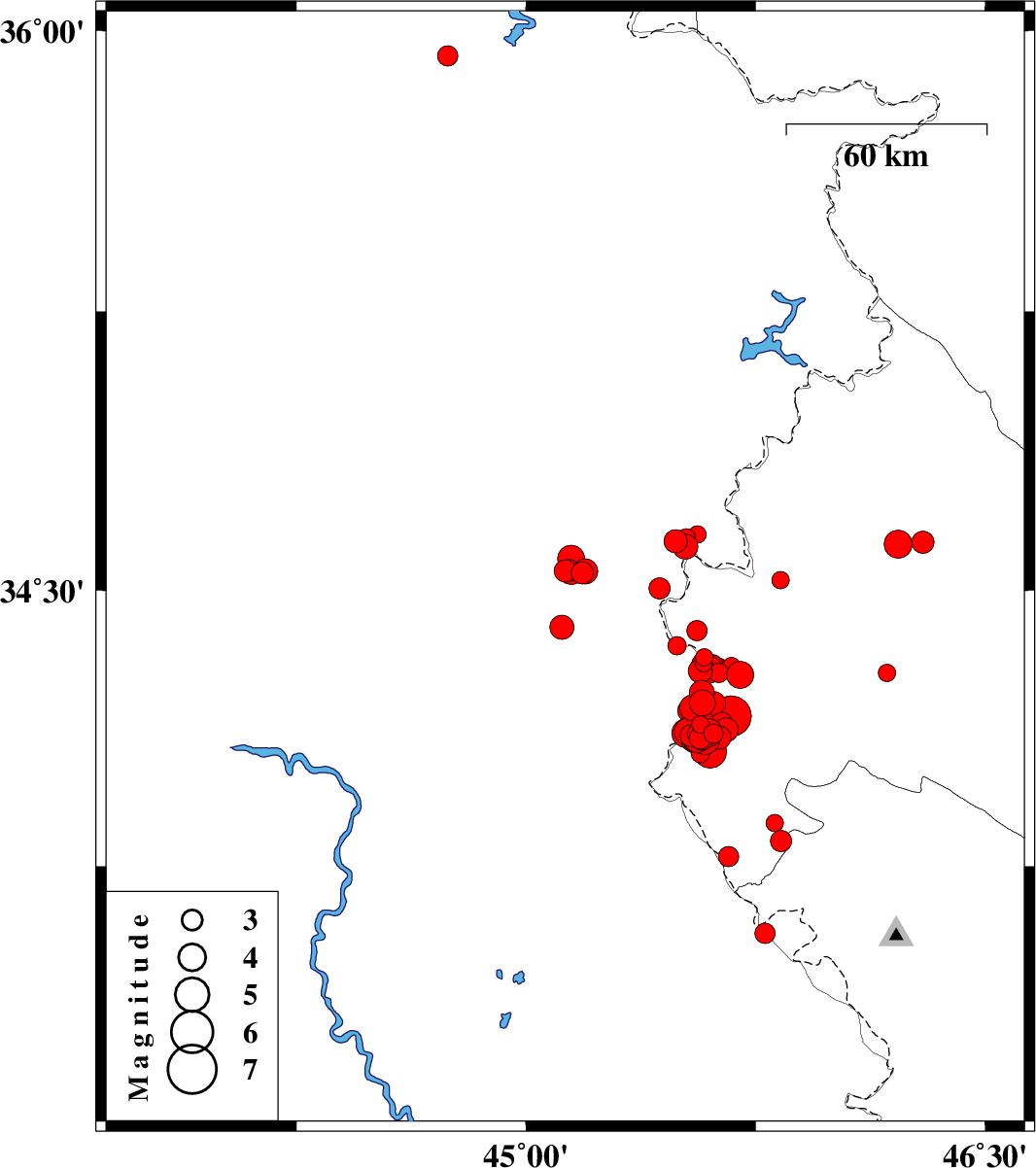 2019/01/16 | 00:50:00.9 | 04:20:00.9 | 34.632 | 45.488 | 14 | ML:3.4 | Iraq, 16 km North of Qasr-E-Shirin | ||