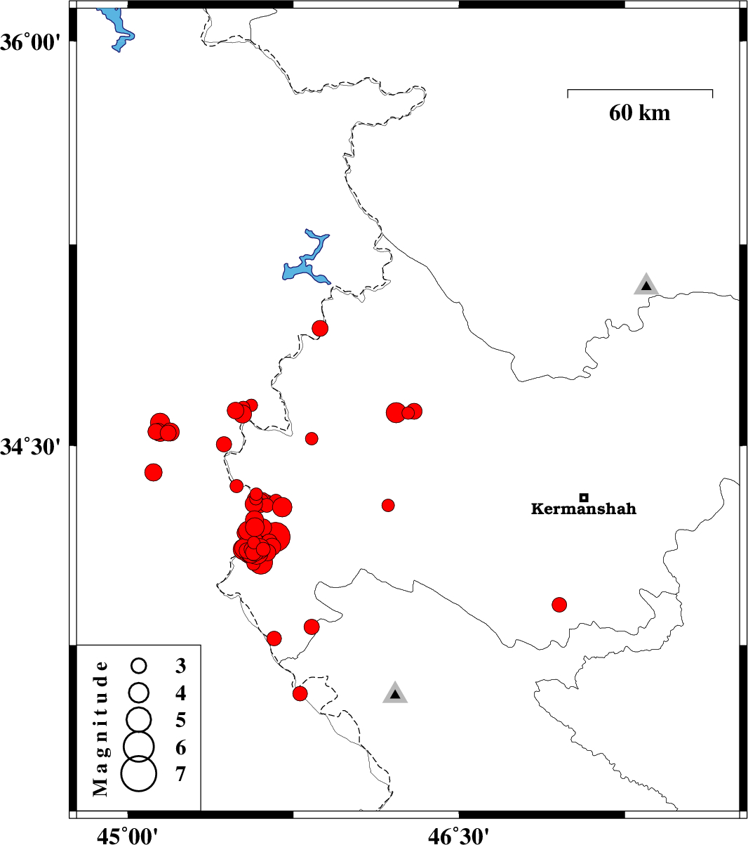 | 2019/01/06 | 15:18:47.3 | 18:48:47.3 | 34.076 | 45.565 | 14 | ML3 | Kermanshah Province, 33 km -West of Gilan-E-Gharb | ||