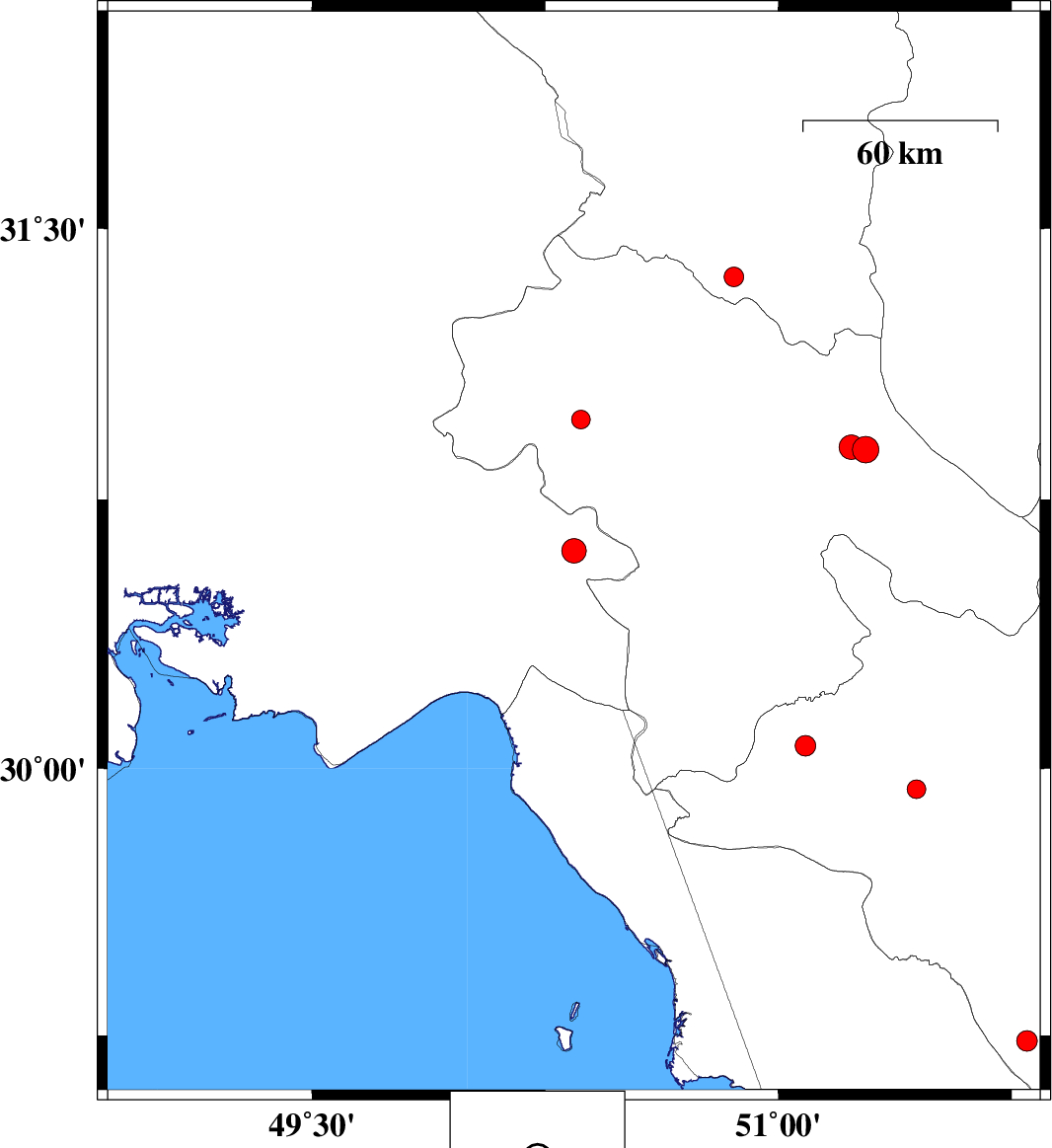 2019/02/02 | 11:38:22.4 | 15:08:22.4 | 30.598 | 50.342 | 15 | ML:2.7 | Khoozestan Province, 9 km of Behbahan | ||