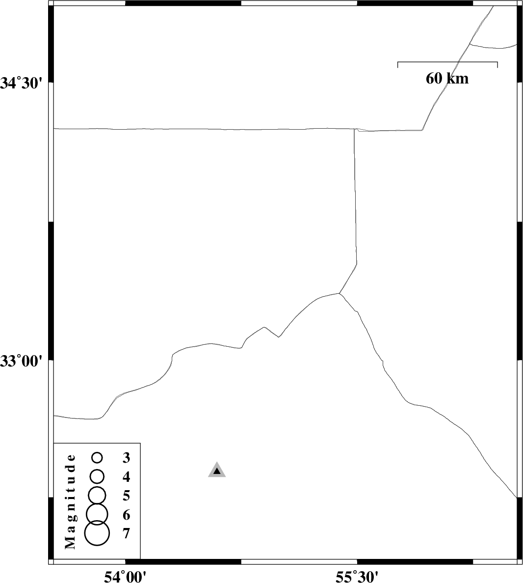 2019/02/04 | 00:32:40.0 | 04:02:40.0 | 33.409 | 55.035 | 14 | ML2.6 | Esfahan Province, 177 km South-West of Tabas |