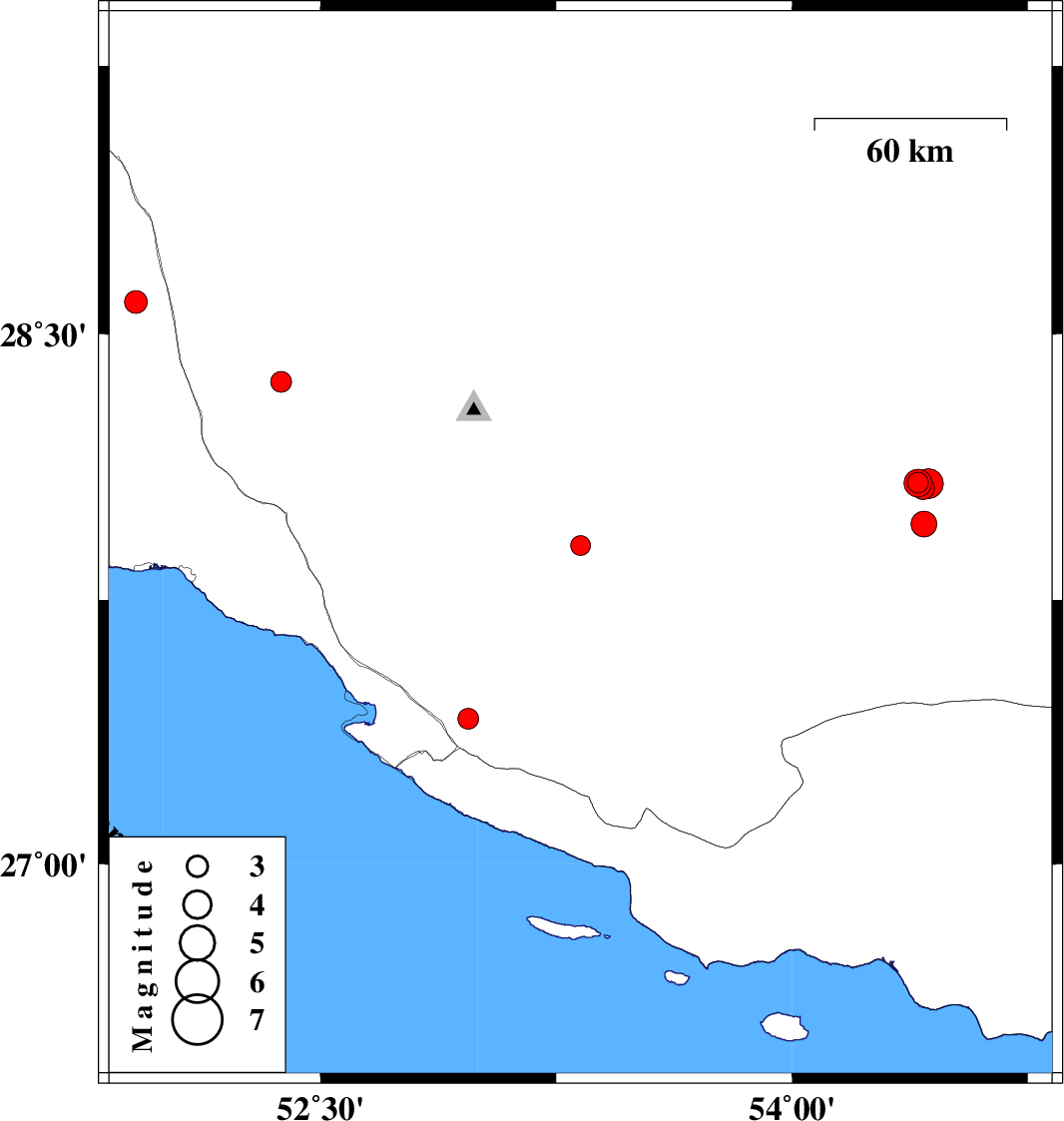 | 2019/01/02 | 15:39:33.1 | 19:09:33.1 | 28.078 | 54.433 | 15 | ML4.3 | Fars Province, 45 km North of Lar |