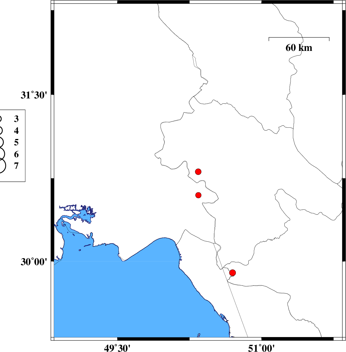| 2019/02/02 | 22:58:19.0 | 02:28:19.0 | 29.896 | 50.698 | 10 | ML2.9 | Fars Province, 40 km North-East of Bandar-e genaveh | ||