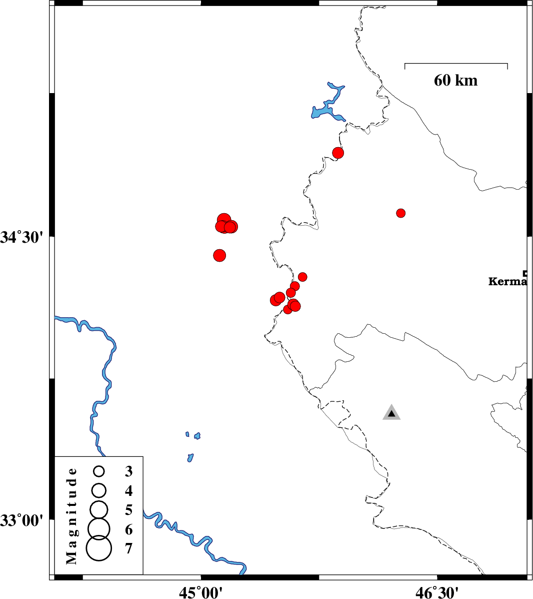 | 2019/01/29 | 06:00:22.8 | 09:30:22.8 | 34.4 | 45.117 | 14 | ML3.5 | Iraq, 45 km South-West of Qasr-E-Shirin | ||
