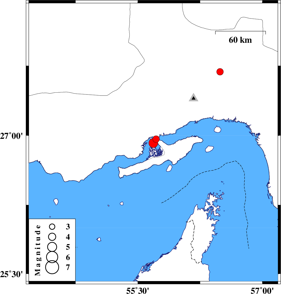 | 2019/02/10 | 10:54:45.9 | 14:24:45.9 | 26.919 | 55.687 | 9 | ML5 | Persian Gulf, 58 km -West of Qeshm | ||