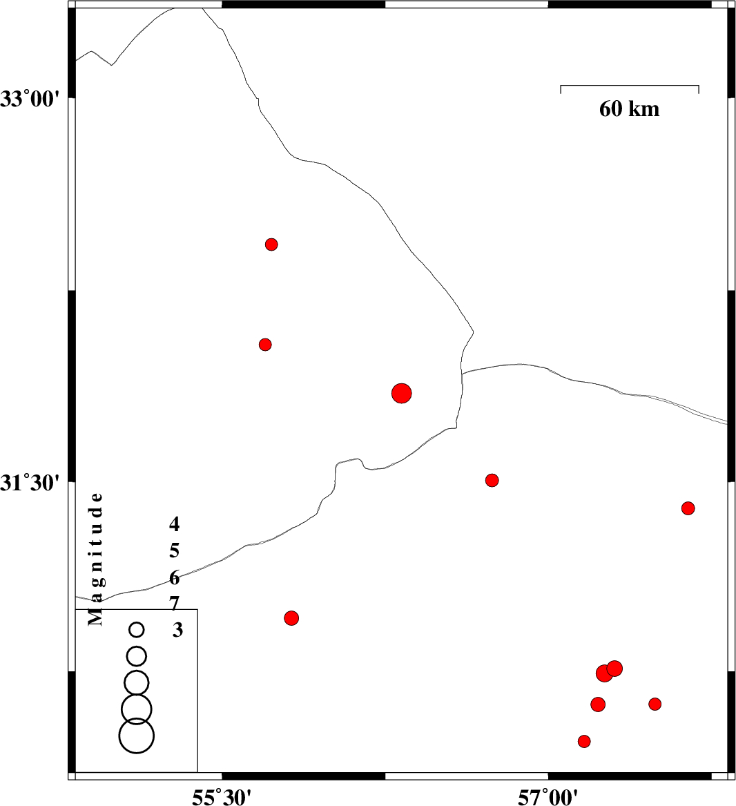 2019/01/28 | 13:39:16.1 | 17:09:16.1 | 30.619 | 57.491 | 14 | ML:2.6 | Kerman Province, 54 km North-East of Kerman | ||