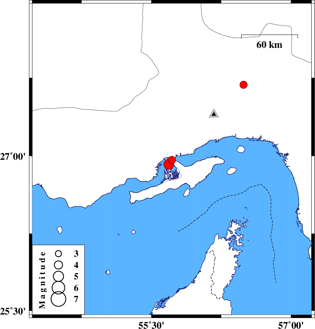 | 2019/02/10 | 10:54:45.9 | 14:24:45.9 | 26.919 | 55.687 | 9 | ML5 | Persian Gulf, 58 km -West of Qeshm | ||