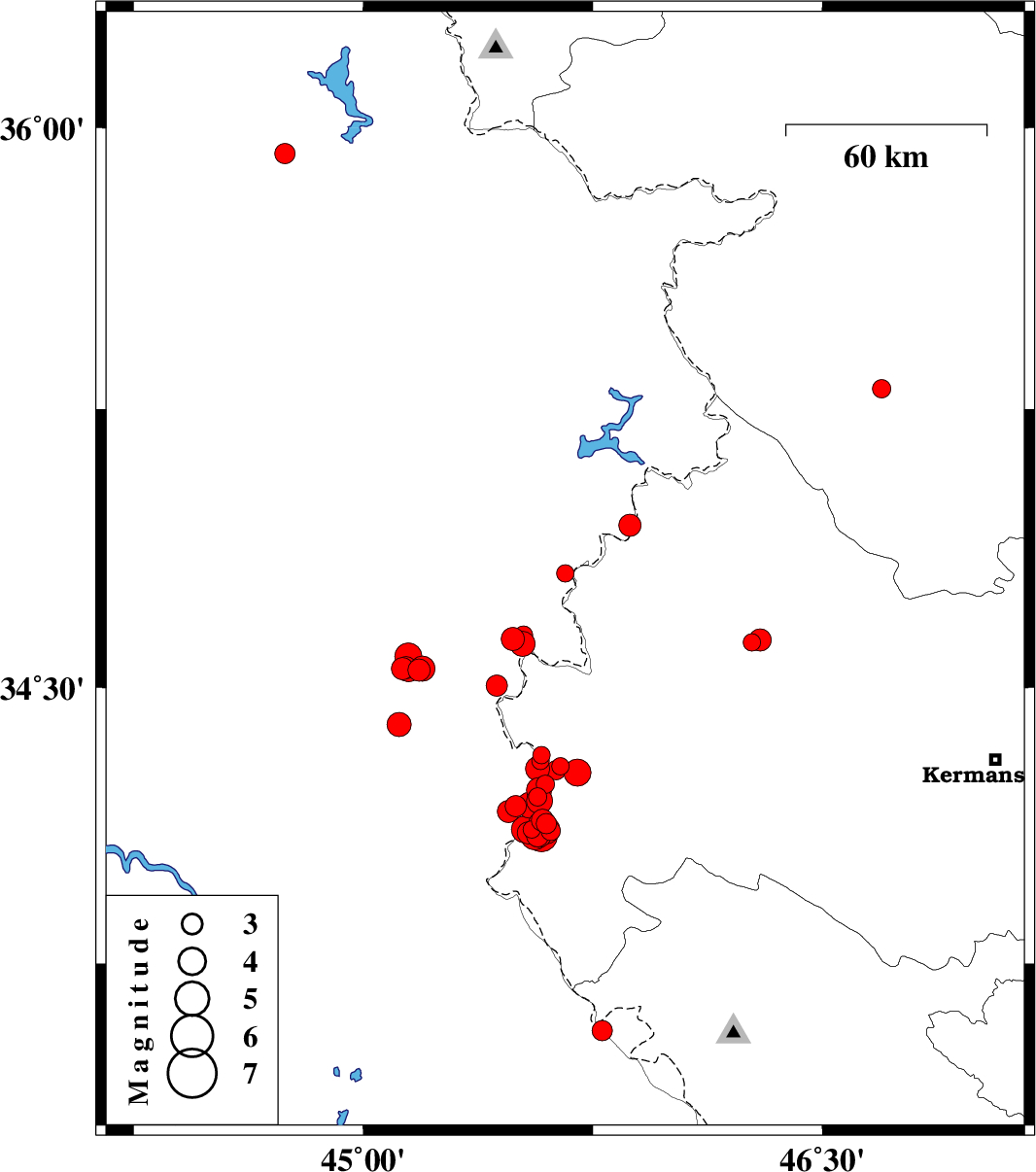 | 2019/01/21 | 18:22:04.2 | 21:52:04.2 | 34.111 | 45.56 | 14 | ML2.9 | Kermanshah Province, 33 km -West of Gilan-E-Gharb | ||