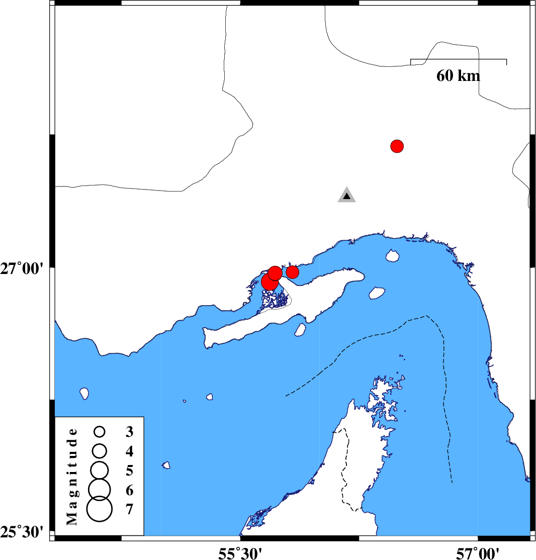 | 2019/02/11 | 04:12:30.9 | 07:42:30.9 | 26.968 | 55.719 | 11 | ML4.1 | Persian Gulf, 54 km -West of Qeshm | ||
