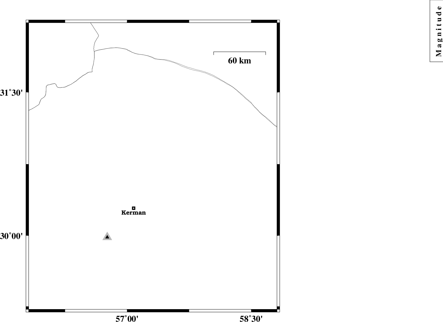 | 2019/01/30 | 23:15:06.0 | 02:45:06.0 | 30.618 | 57.229 | 14 | ML2.9 | Kerman Province, 39 km North-East of Kerman | ||