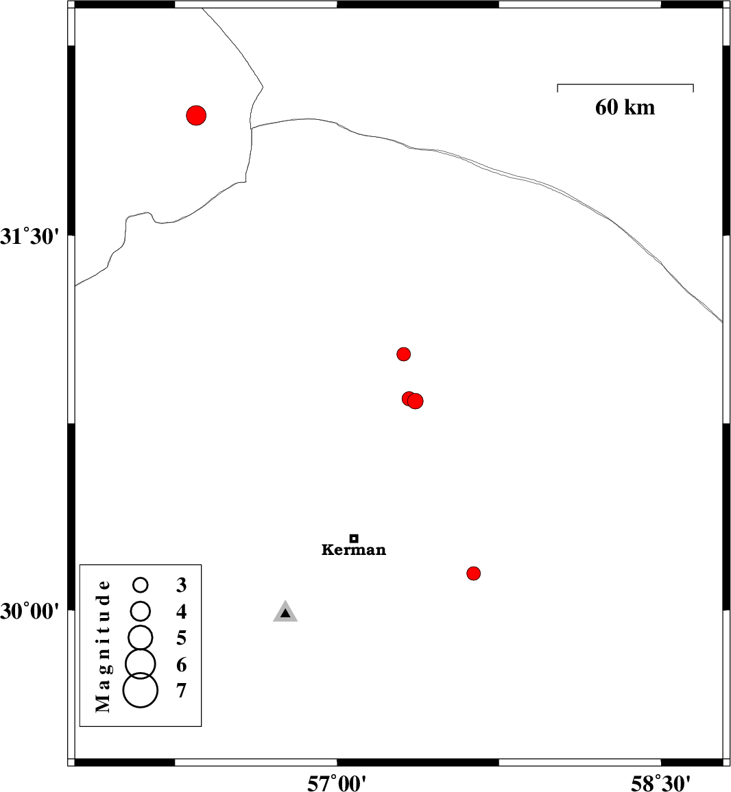 | 2019/02/11 | 18:45:32.7 | 22:15:32.7 | 30.017 | 57.609 | 15 | ML2.8 | Kerman Province, 59 km South-East of Kerman | ||