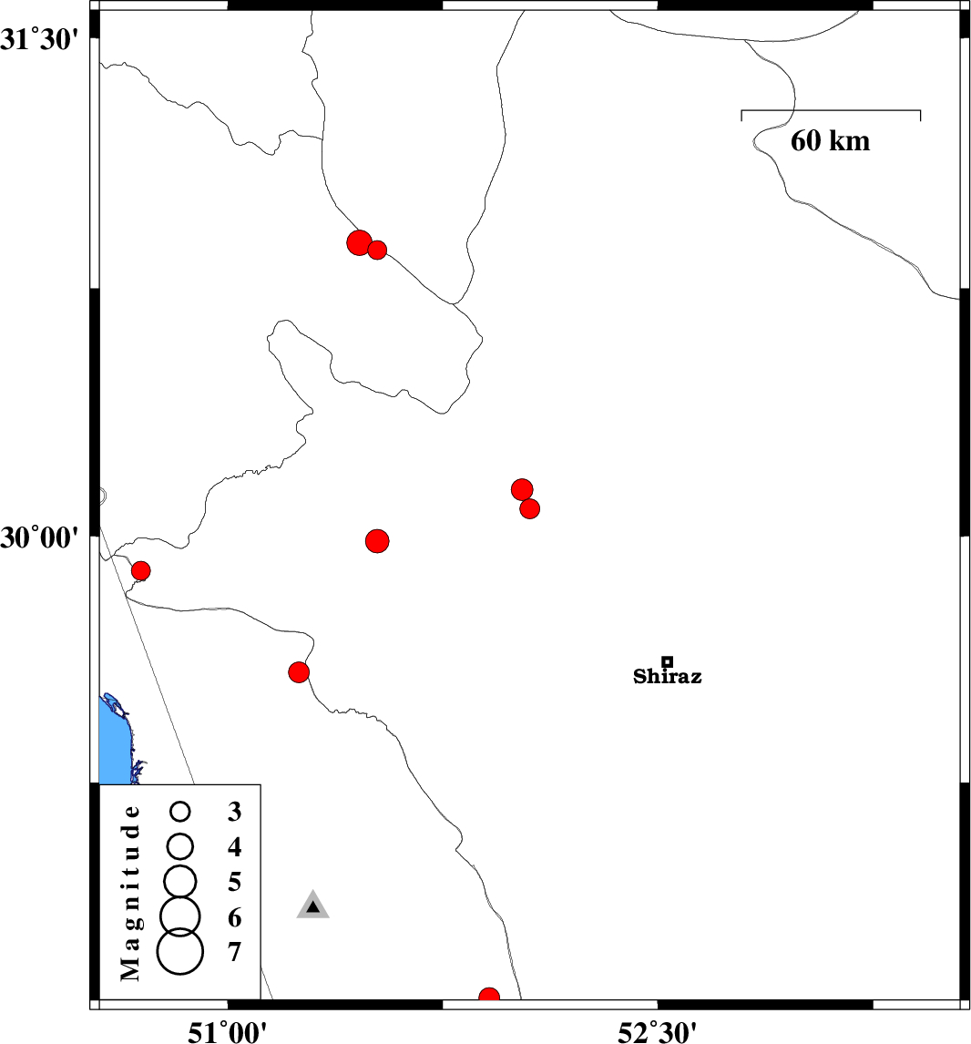 | 2019/02/06 | 07:41:40.9 | 11:11:40.9 | 29.985 | 51.522 | 18 | ML3.7 | Fars Province, 14 km South of Nurabad | ||