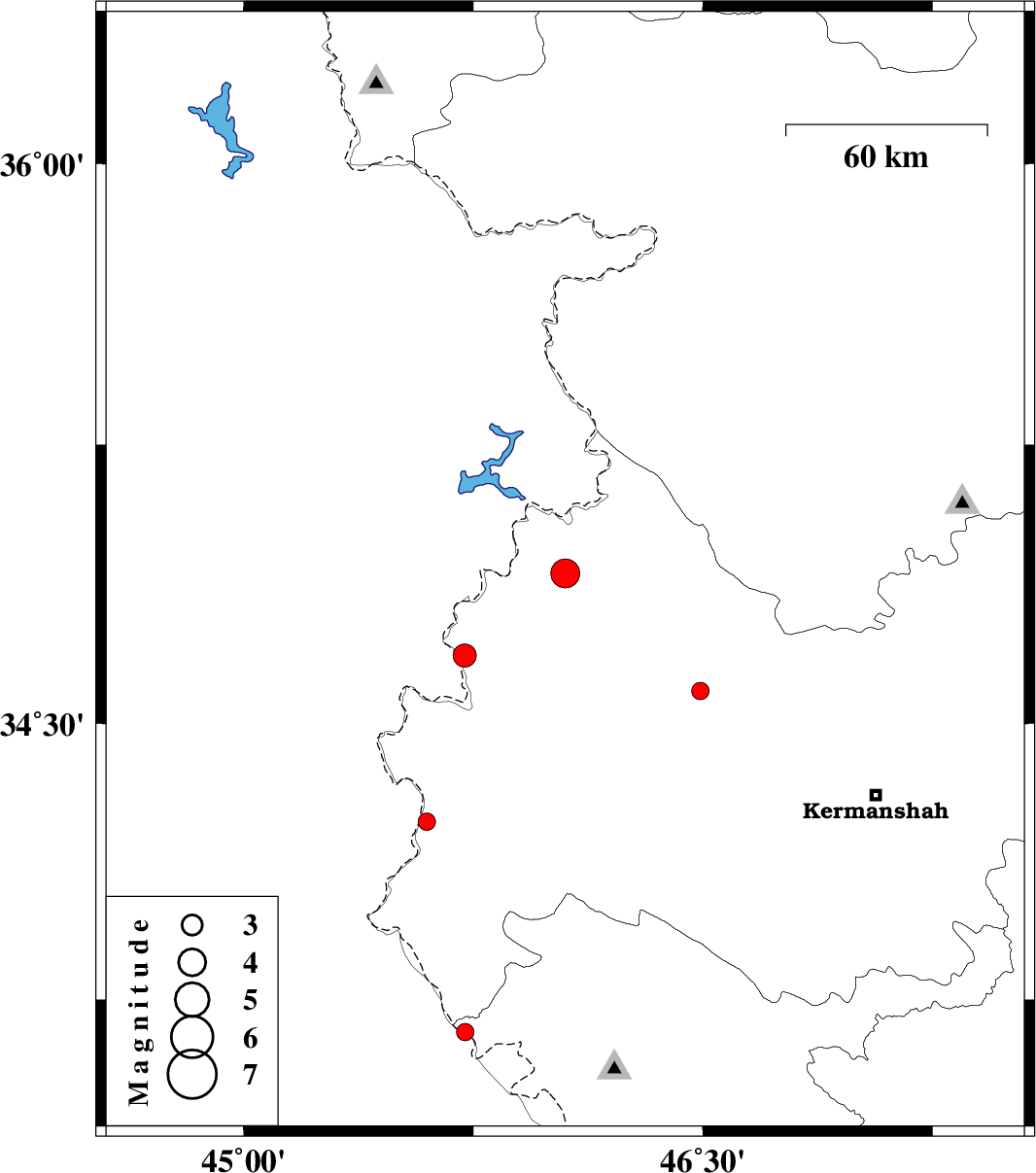 | 2019/02/16 | 06:01:22.0 | 09:31:22.0 | 34.683 | 45.722 | 14 | ML3.4 | Kermanshah Province, 13 km -West of Tazehabad |