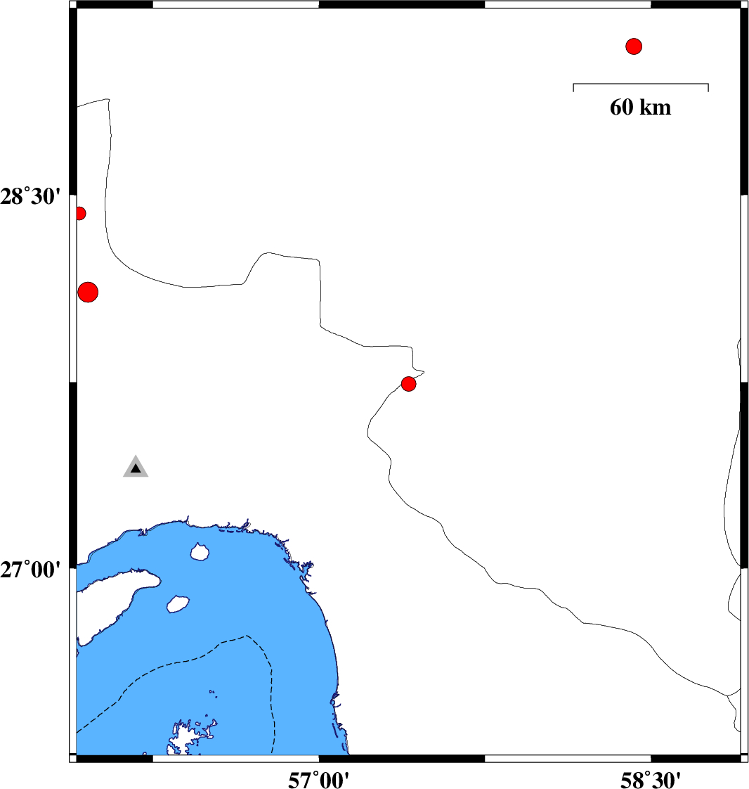 | 2019/02/14 | 08:00:47.1 | 11:30:47.1 | 28.111 | 55.956 | 15 | ML4.1 | Hormozgan Province, 23 km South of Hajiabad |