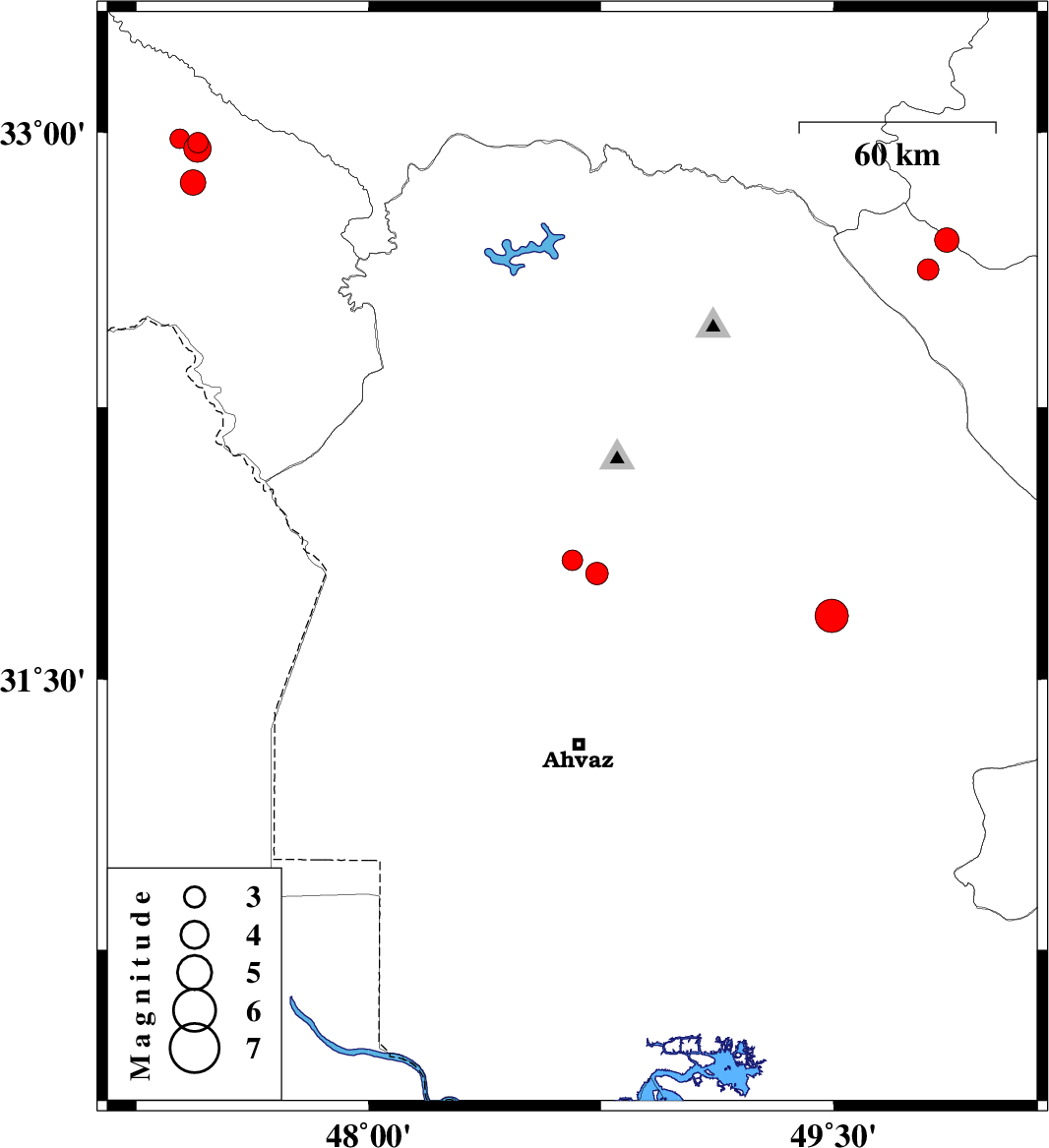 2019/02/23 | 05:39:25.5 | 09:09:25.5 | 32.972 | 47.449 | 14 | ML:2.9 | Ilam Province, 5 km of Abdanan | ||