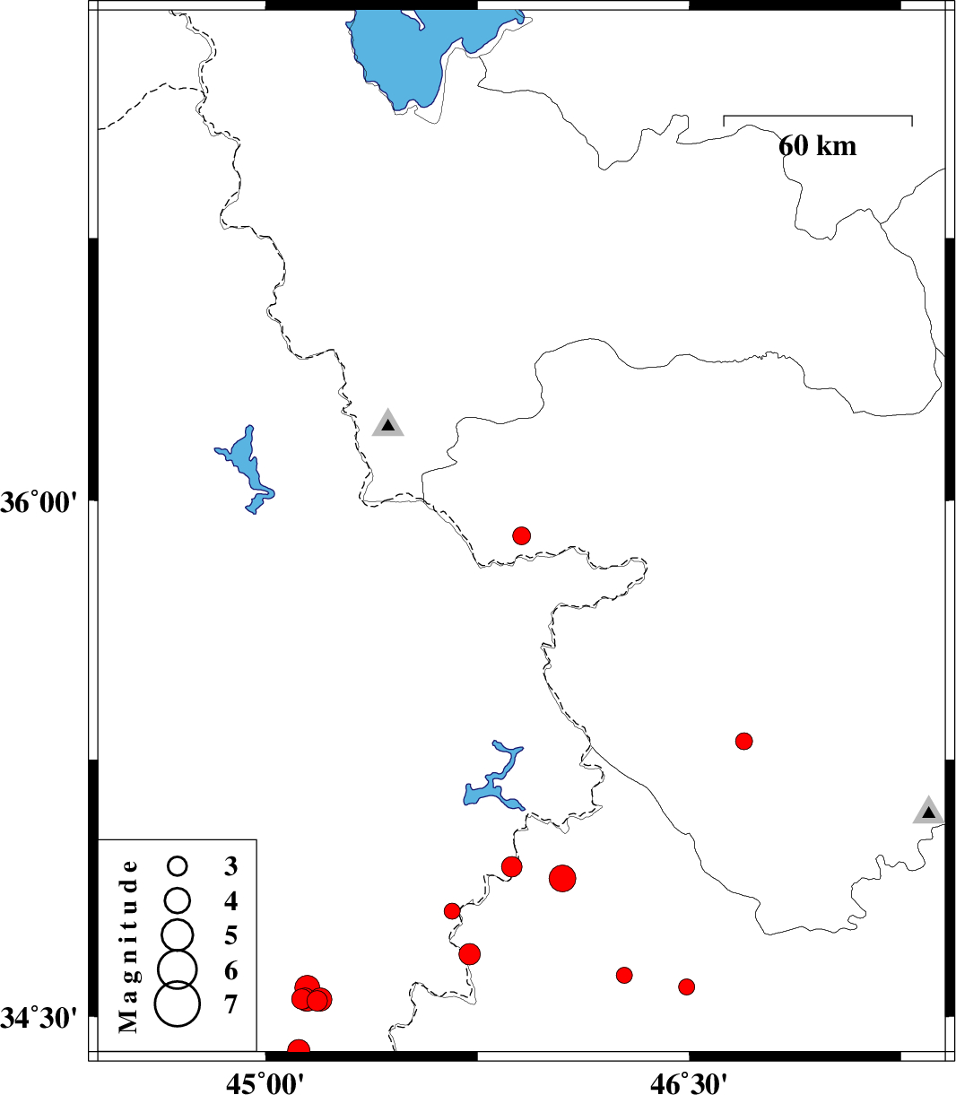 | 2019/02/06 | 00:53:02.7 | 04:23:02.7 | 35.304 | 46.694 | 15 | ML2.7 | Kurdistan Province, 28 km -West of Sanandaj | ||