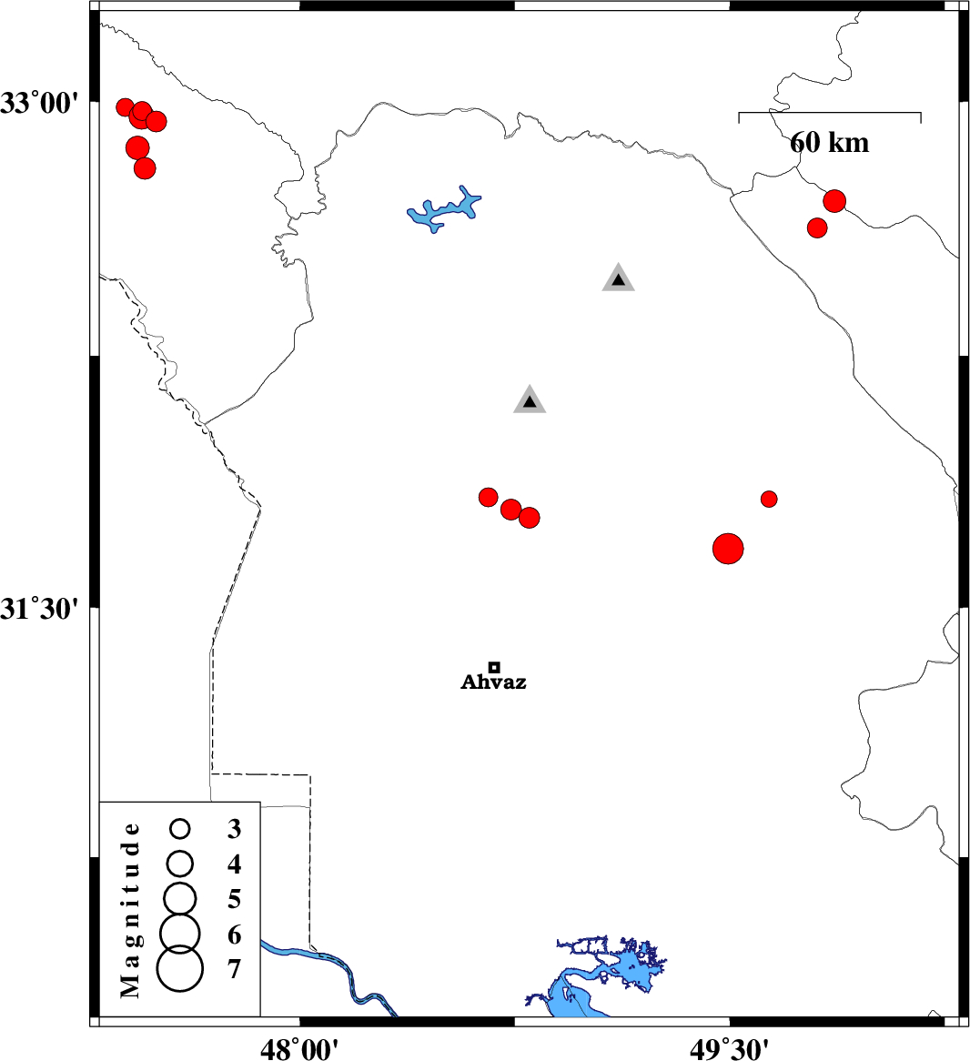 2019/02/23 | 05:39:25.5 | 09:09:25.5 | 32.972 | 47.449 | 14 | ML2.9 | Ilam Province, 5 km of Abdanan | ||