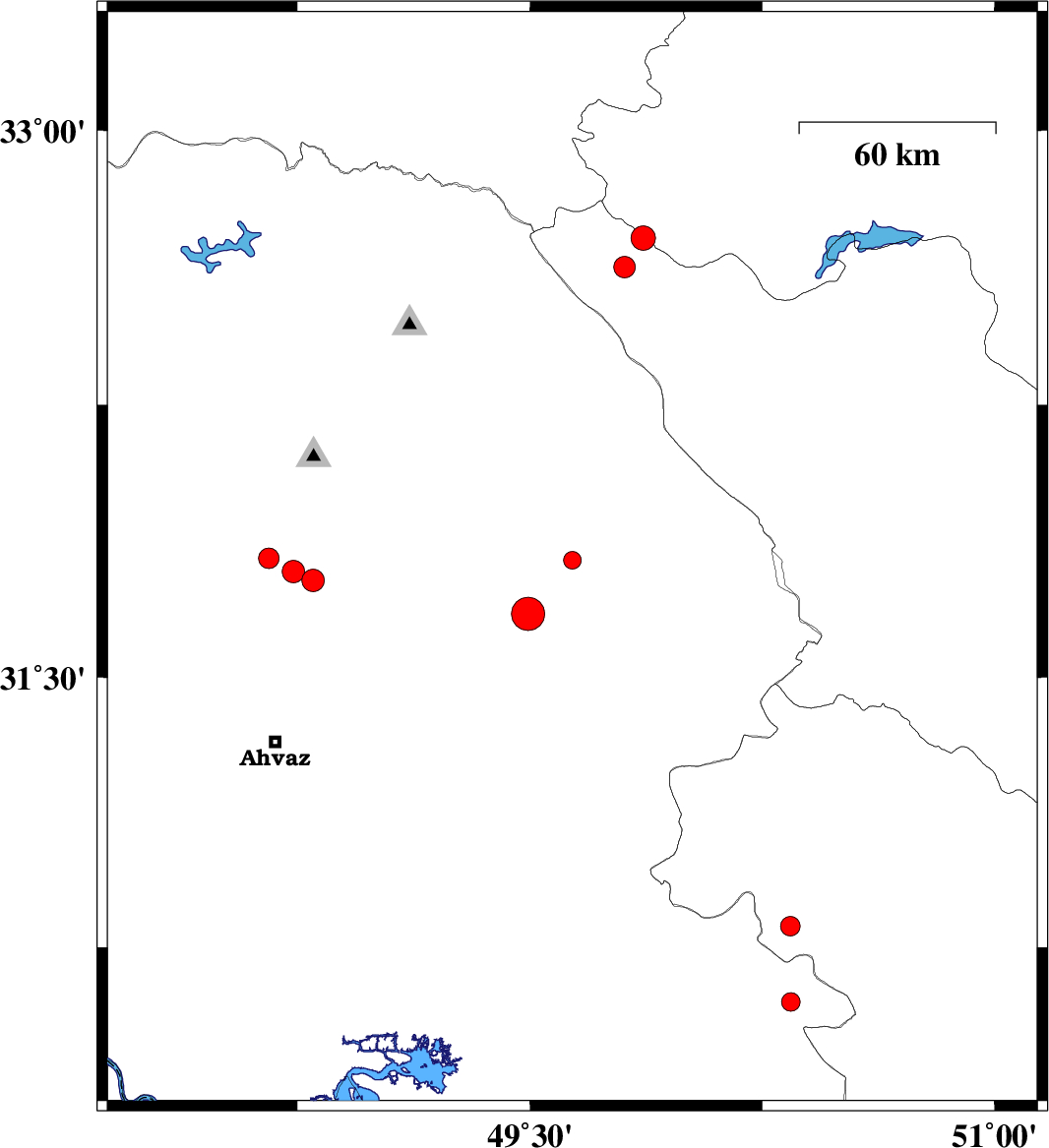 2019/02/23 | 01:00:11.5 | 04:30:11.5 | 31.829 | 48.657 | 15 | ML3 | Khoozestan Province, 30 km South-West of Shushtar | ||