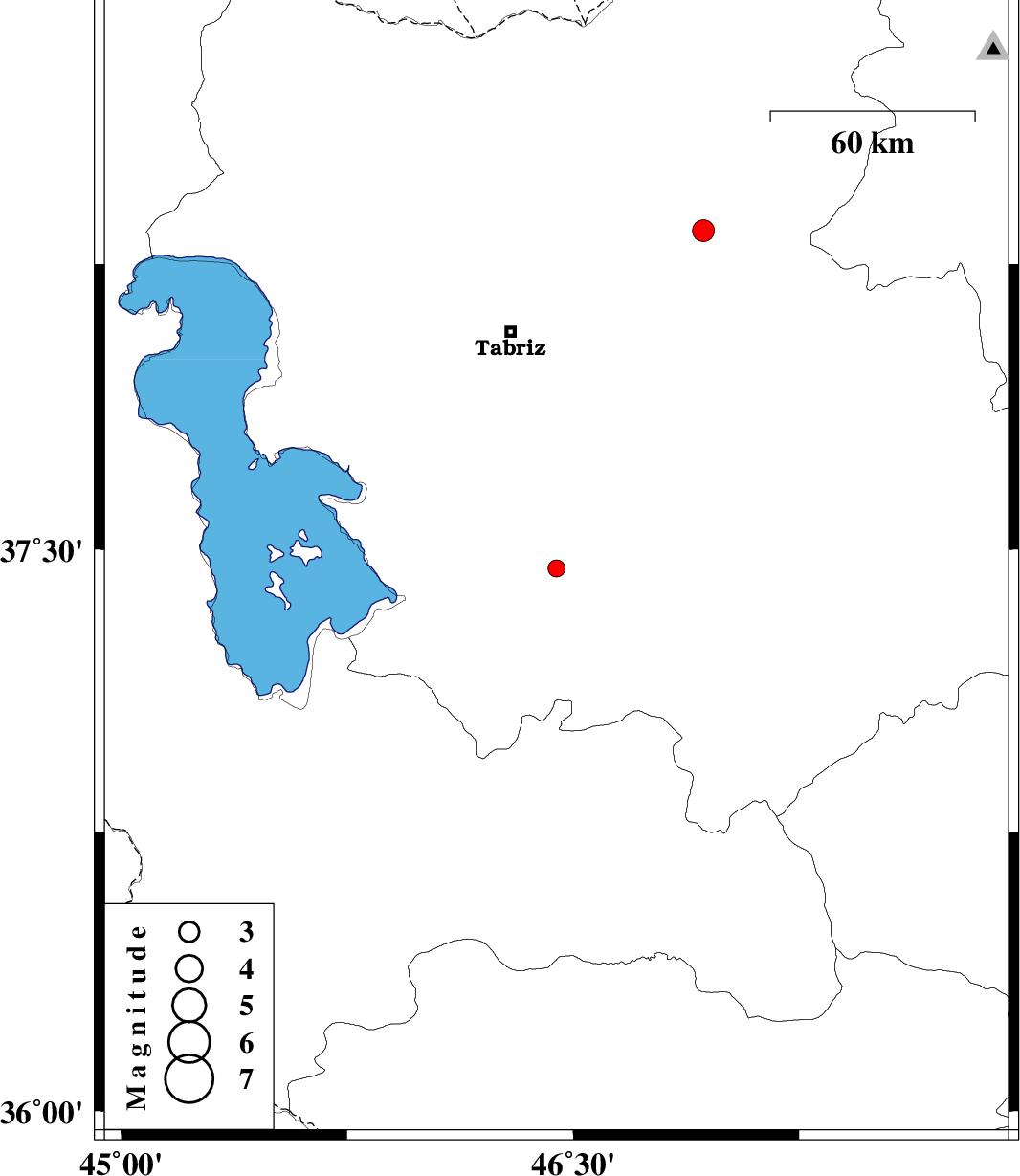 | 2019/02/18 | 10:52:18.6 | 14:22:18.6 | 38.337 | 46.933 | 14 | ML3.3 | Azarbaijan Sharghi Province, 18 km -West of Haris |