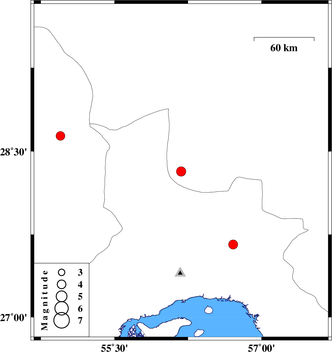 | 2019/03/27 | 06:19:31.6 | 10:49:31.6 | 27.66 | 56.71 | 10 | Mb4.3 | Hormozgan Province, 58 km North-West of Dehbarez | ||