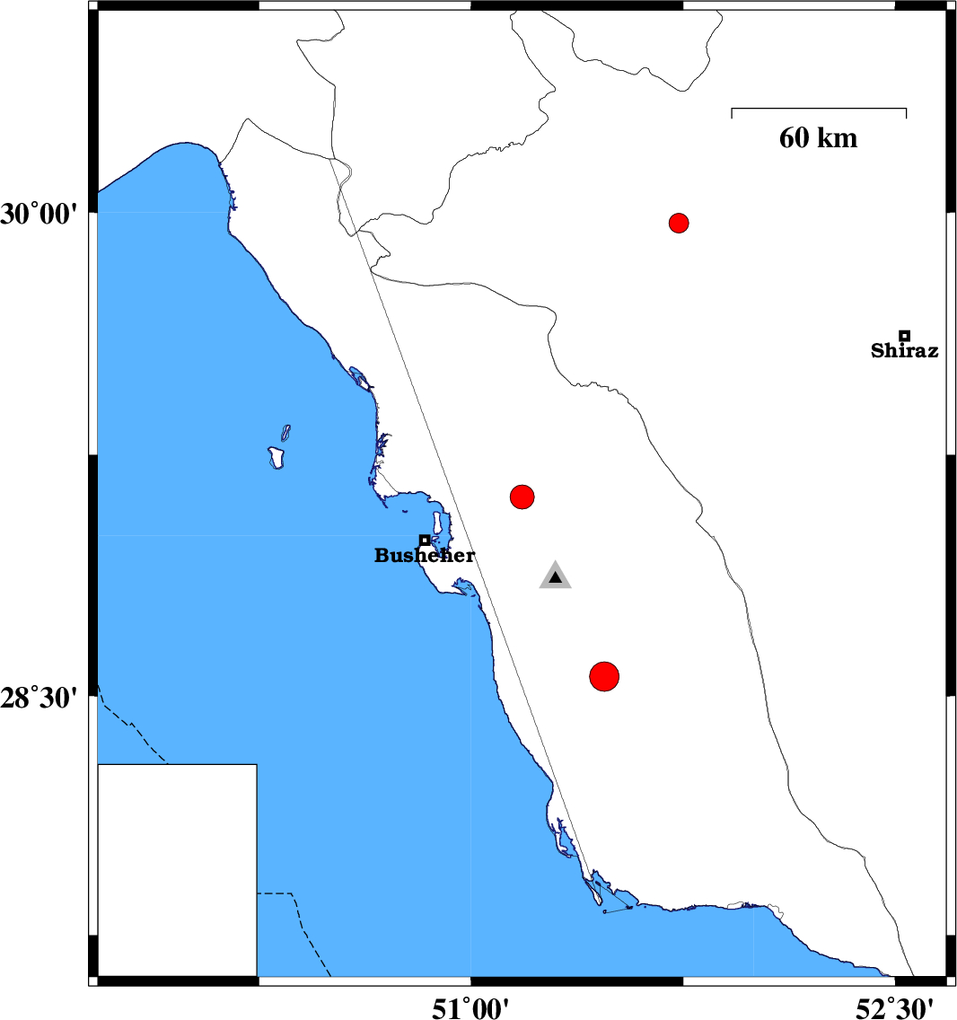 | 2019/04/19 | 00:57:45.5 | 05:27:45.5 | 29.12 | 51.18 | 5 | ML3.8 | Bushehr Province, 16 km South of Borazjan | ||