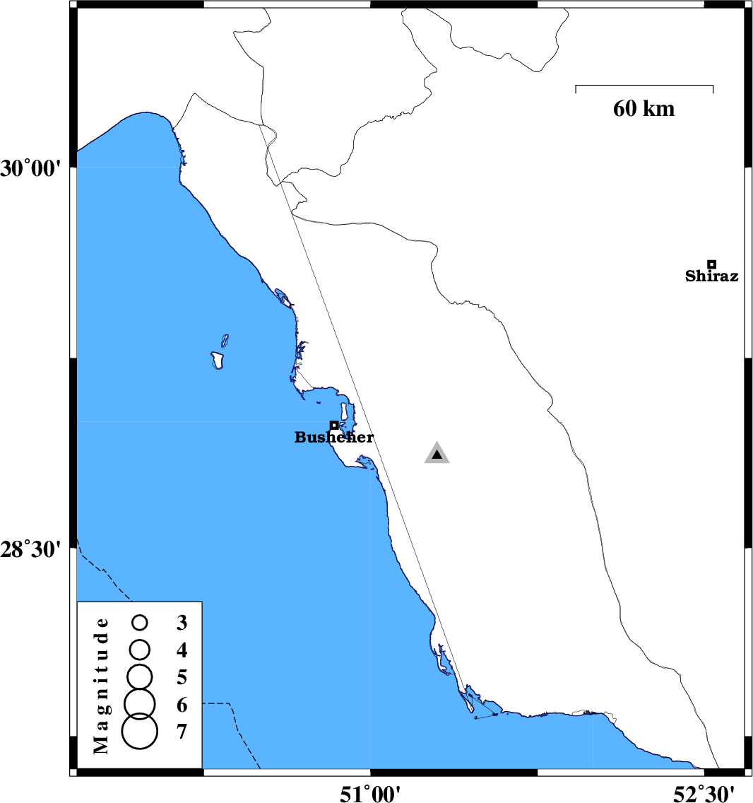 | 2019/04/19 | 00:57:45.5 | 05:27:45.5 | 29.12 | 51.18 | 5 | ML3.8 | Bushehr Province, 16 km South of Borazjan |