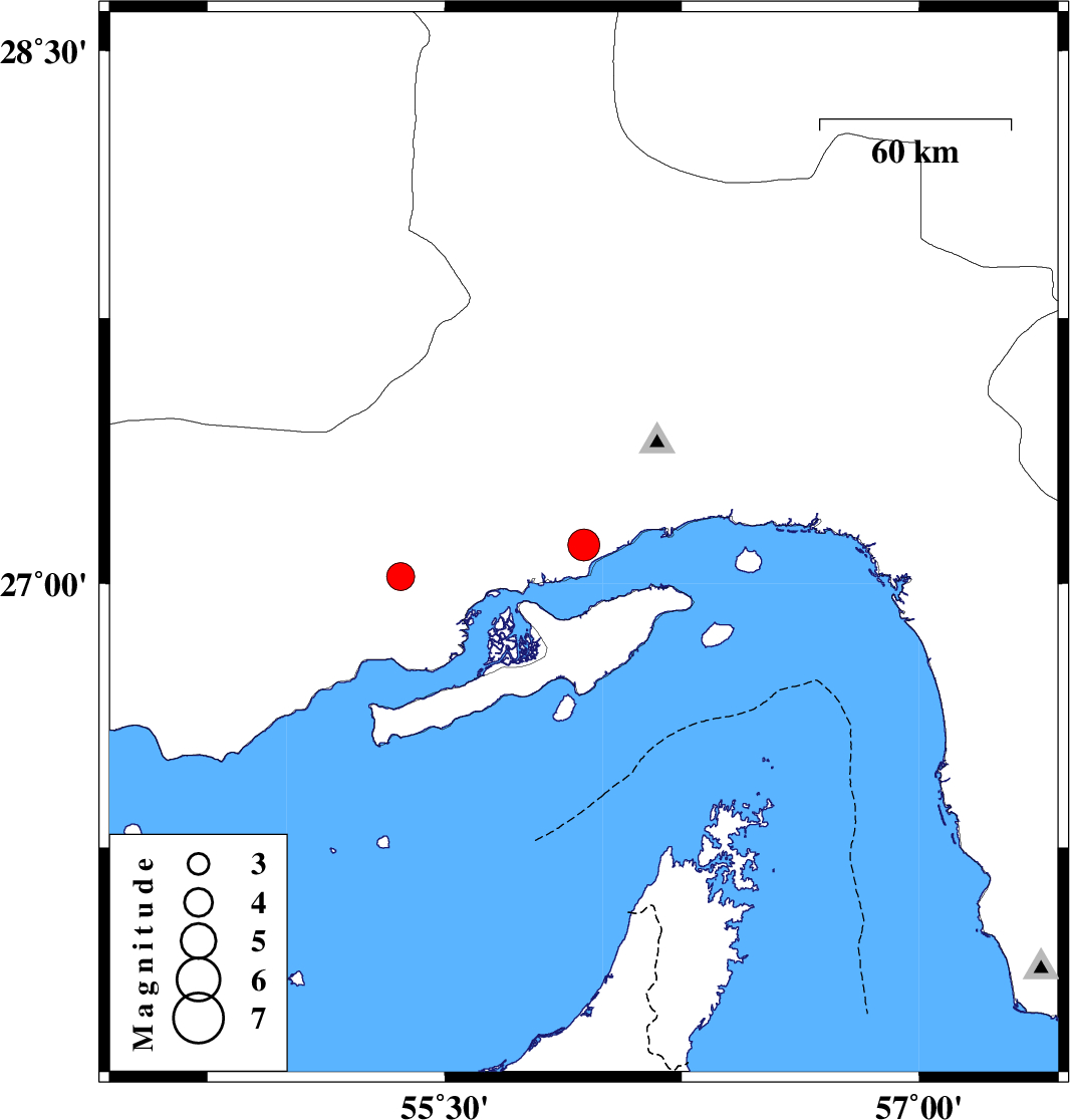 | 2019/04/16 | 05:42:15.0 | 10:12:15.0 | 27.02 | 55.36 | 32 | Mb4 | Hormozgan Province, 90 km -West of Qeshm |